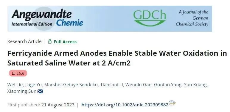 北化工最新Angew!饱和盐水中水氧化,电流密度达2 A/cm2!