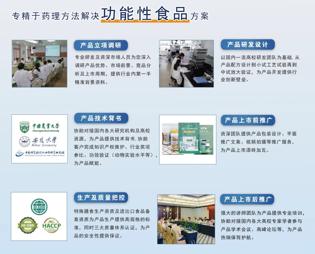 保健食品:以选择高效的功能成分为配方原则,多采用先进工艺。