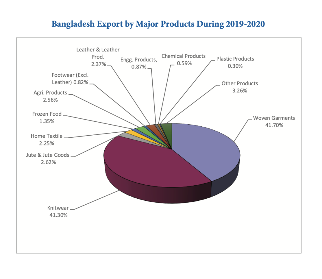 2019至2020年按商品种类分列的孟加拉国出口组成 / 图源:孟加拉国出口促进局(Export Promotion Bureau)