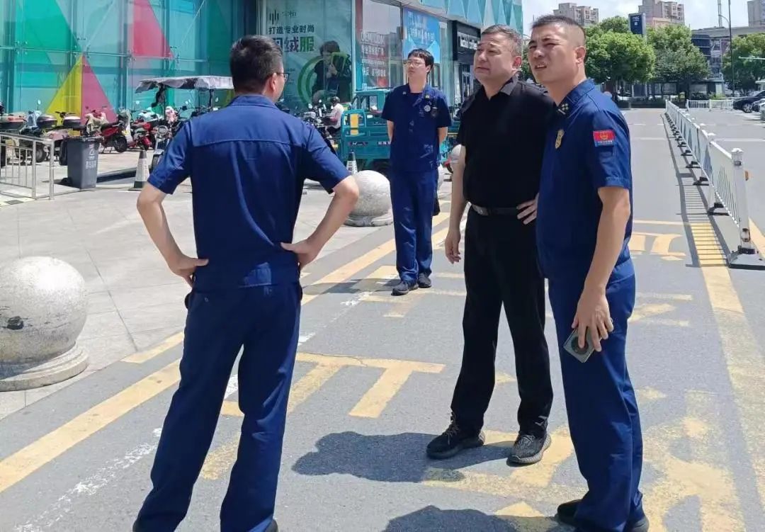 平湖·中国服装城陈望总经理,根据现场管理情况,向消防队长和教导员做了近期及旺季安全部署工作汇报: