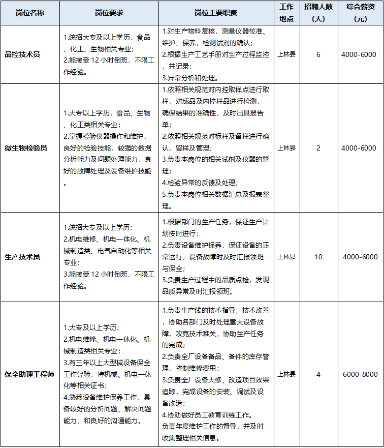 农夫山泉股份有限公司成立于1996年9月,2020年9月成功在香港上市。产品线涉及饮用水、果蔬汁、茶饮料、咖啡、酸奶、农产品等多领域,其中,天然水市占率连续多年占国内首位,饮料年产量达千万吨。农夫山泉秉着感恩水源地人民的诚意,致力于推动当地人才就业和经济发展,农夫山泉广西大明山饮料有限公司亟需招聘以下岗位,竭诚欢迎优秀人才加入!