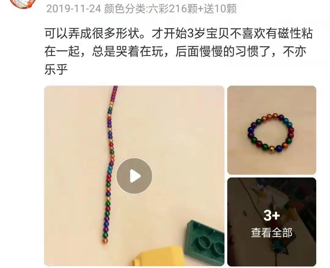 “可以弄成很多形状,才开始3岁的宝贝不喜欢有磁性粘在一起,总是哭着在玩,后来慢慢习惯了,玩得不亦乐乎”