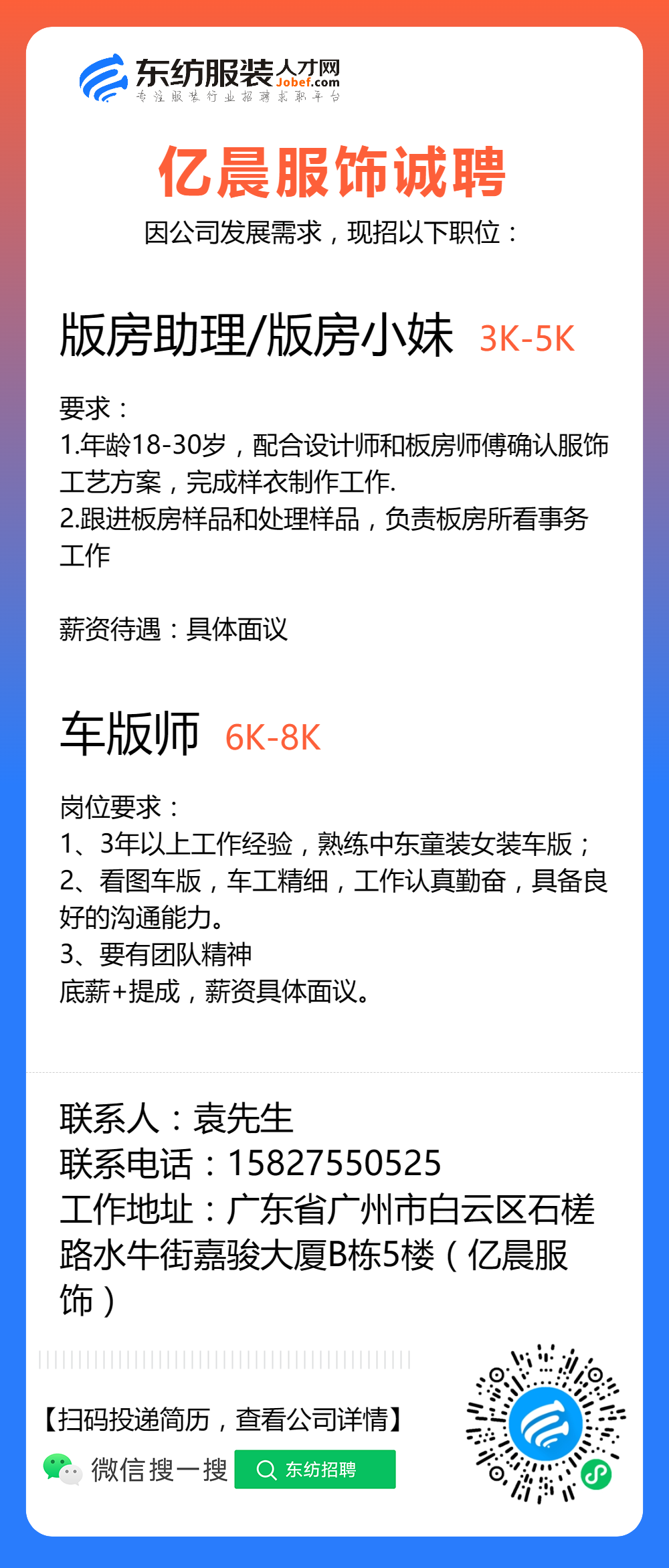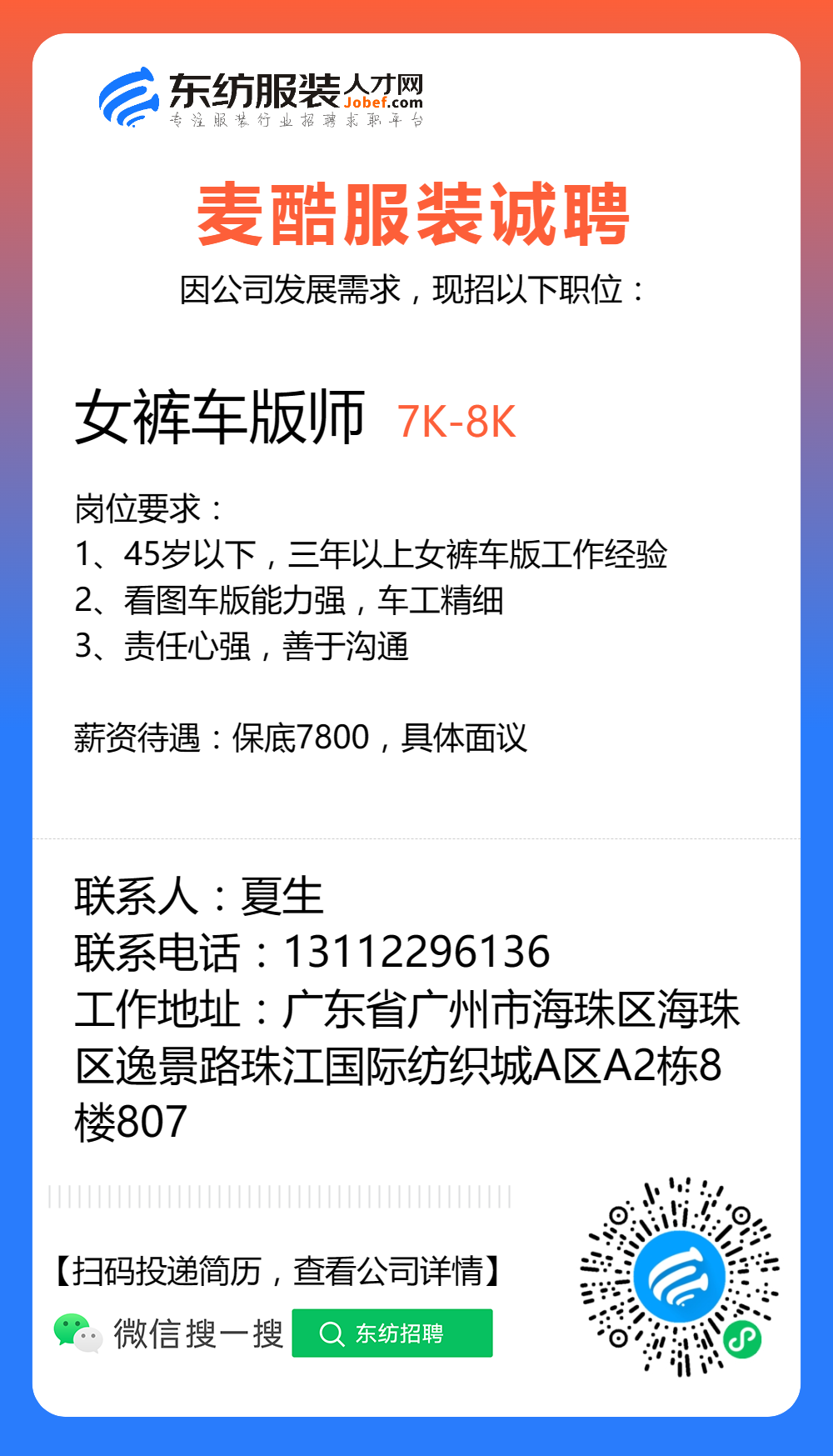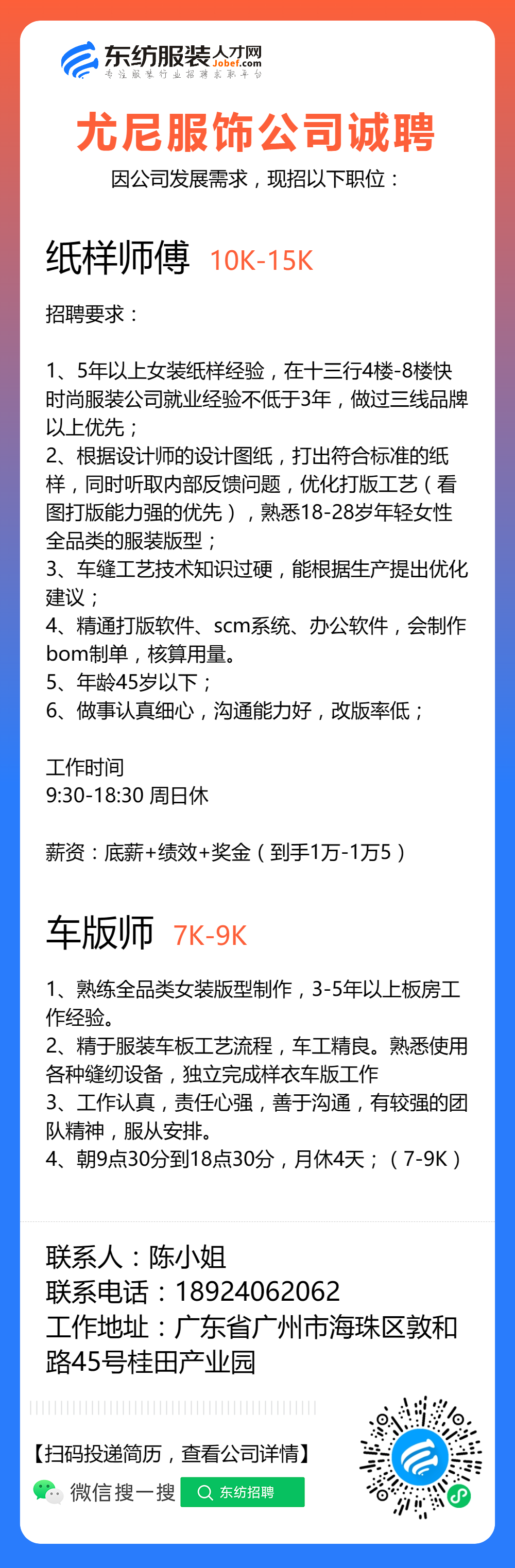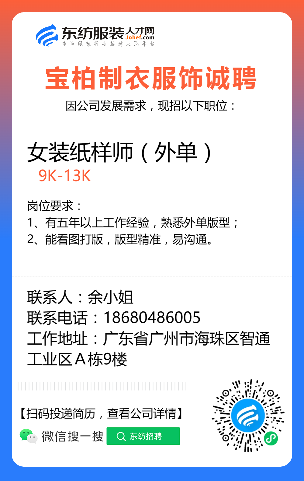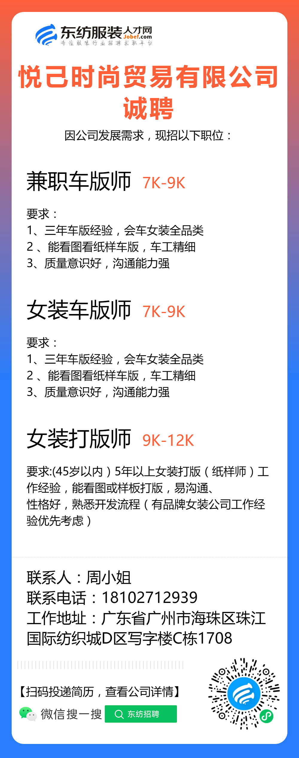 服装招聘·技术类丨8. 25 号,打版师、车版师……