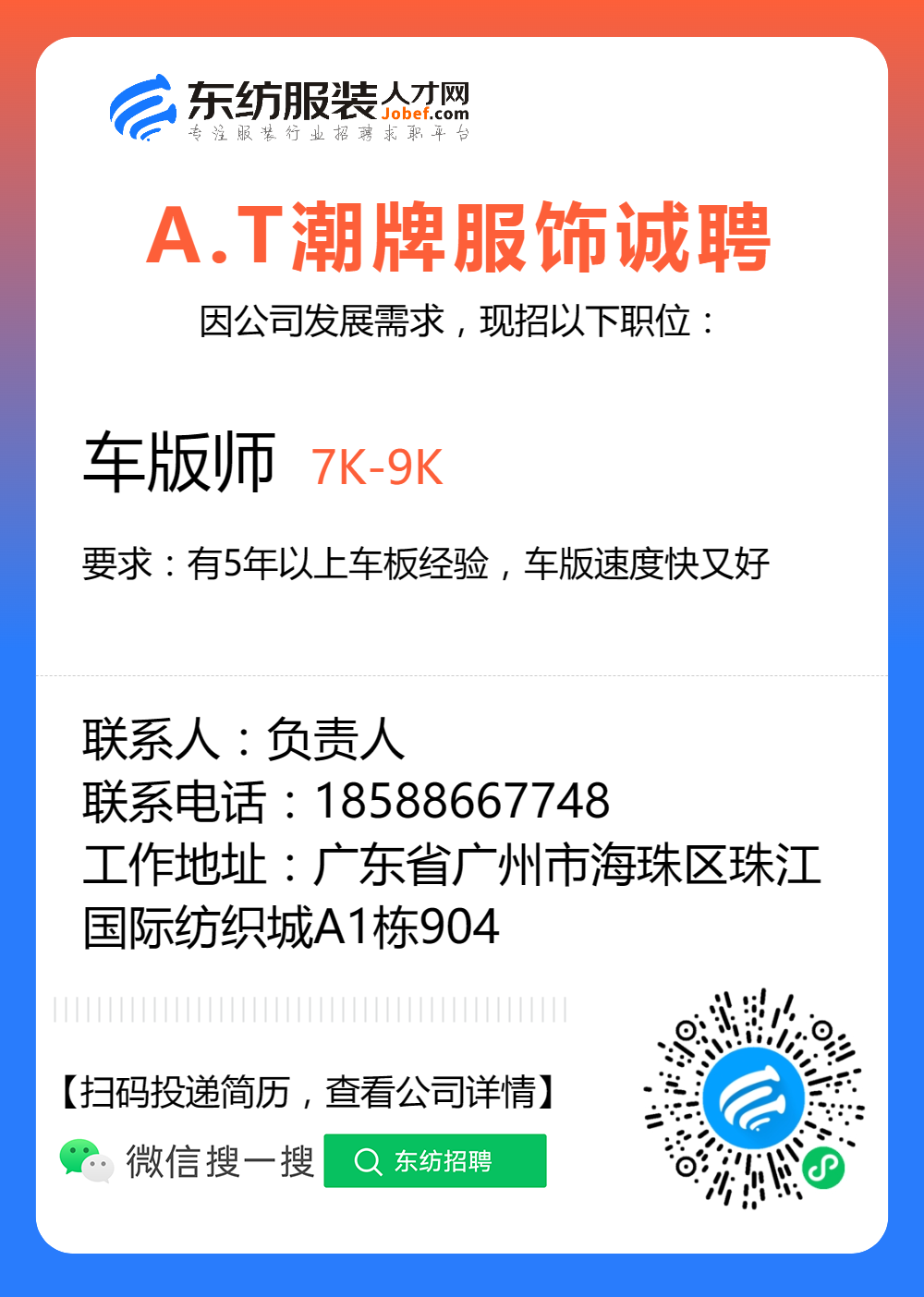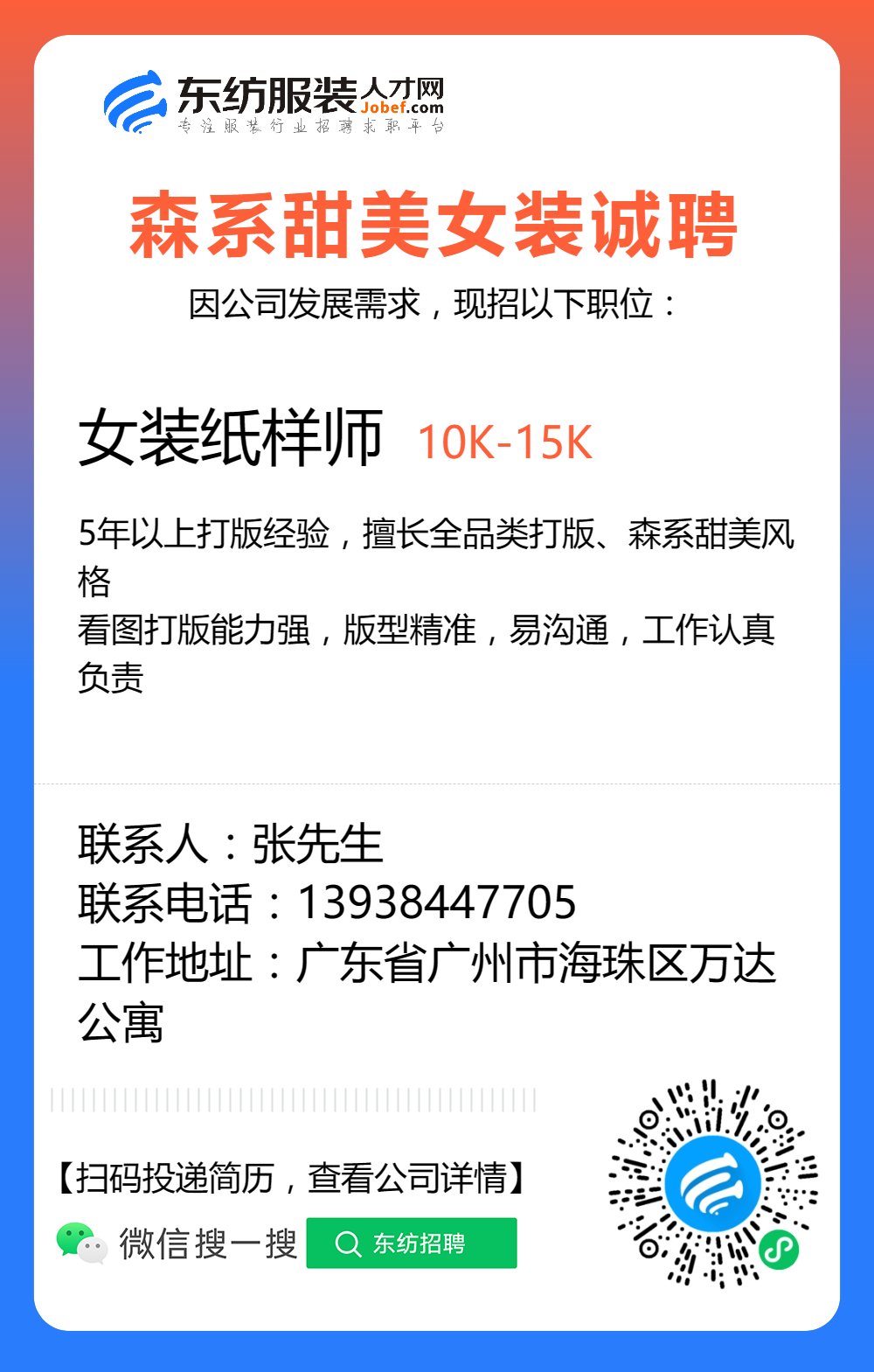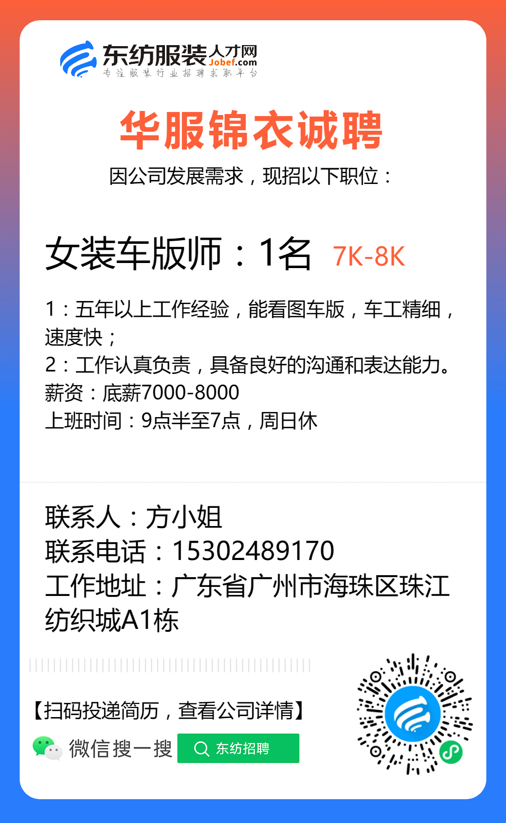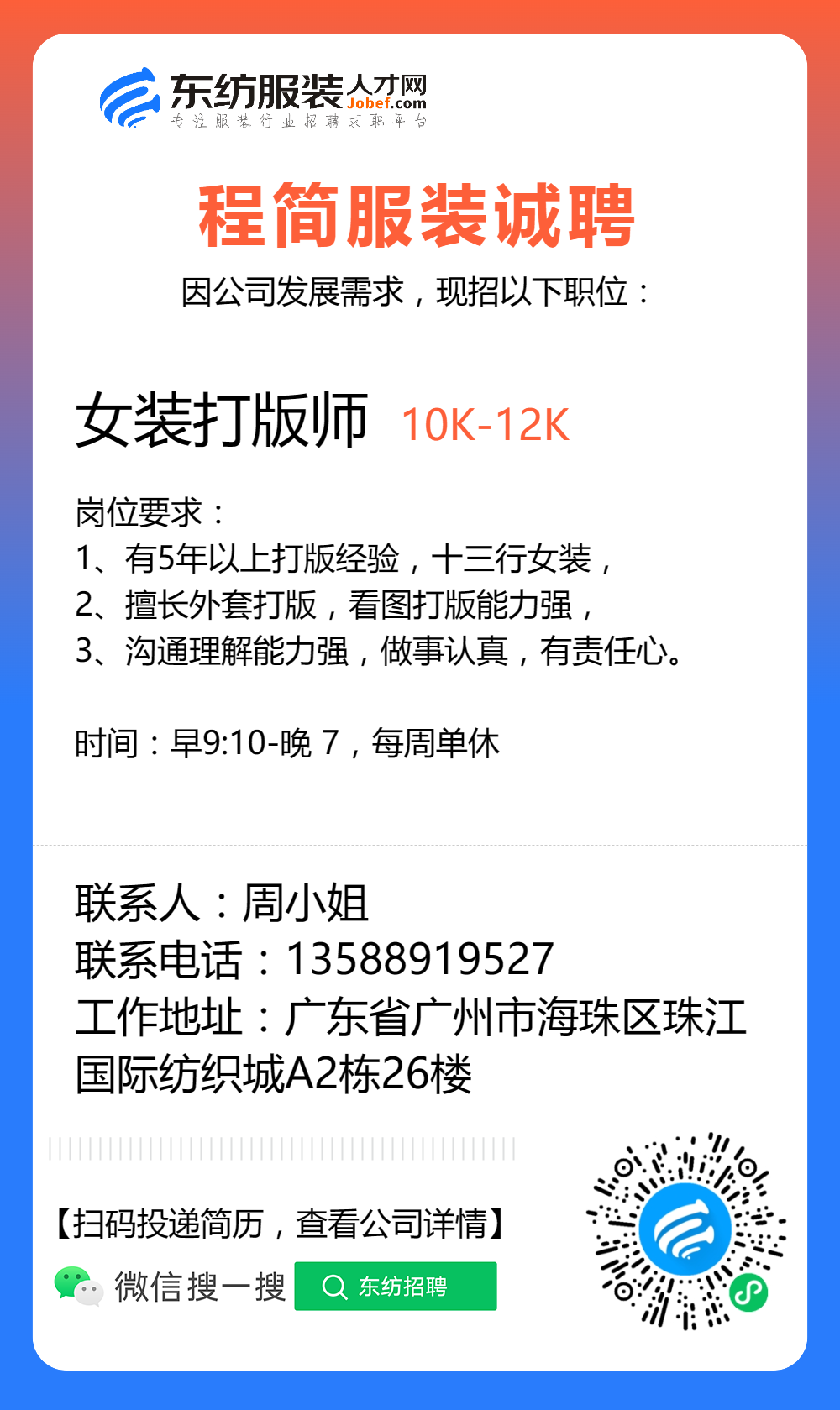 服装招聘·技术类丨8. 25 号,打版师、车版师……