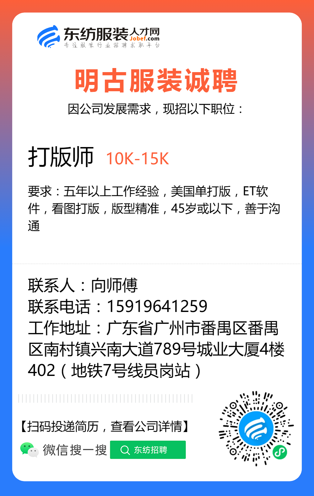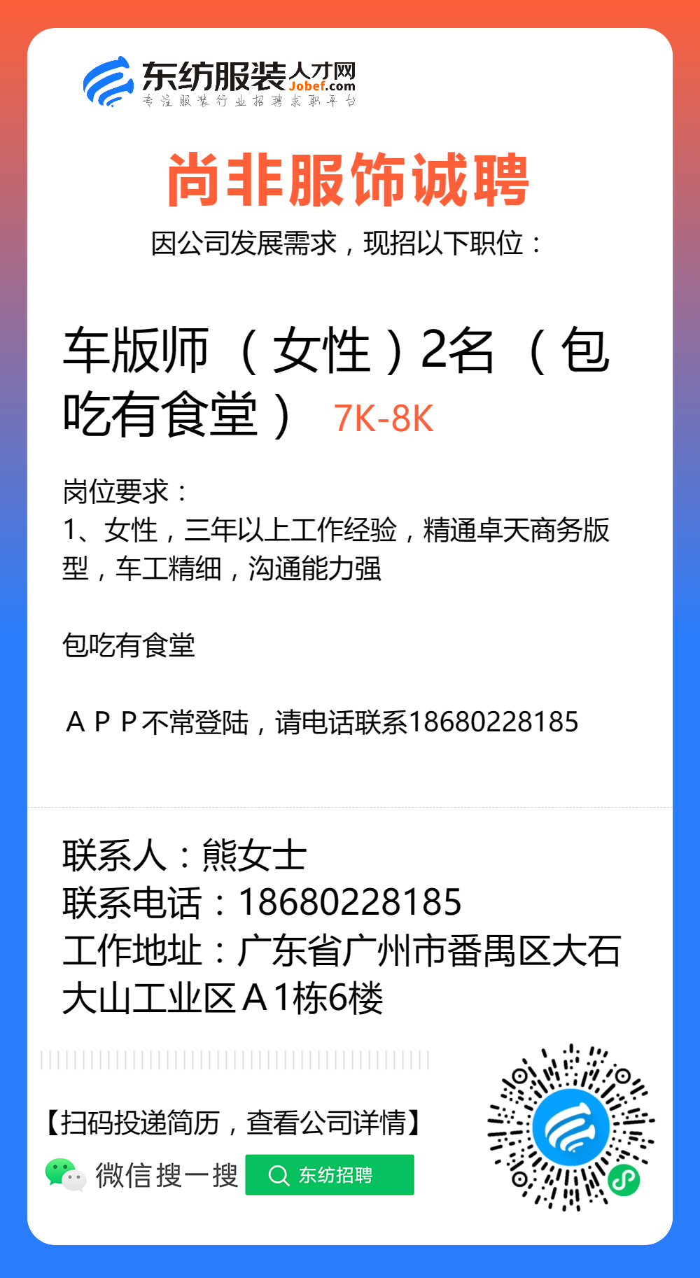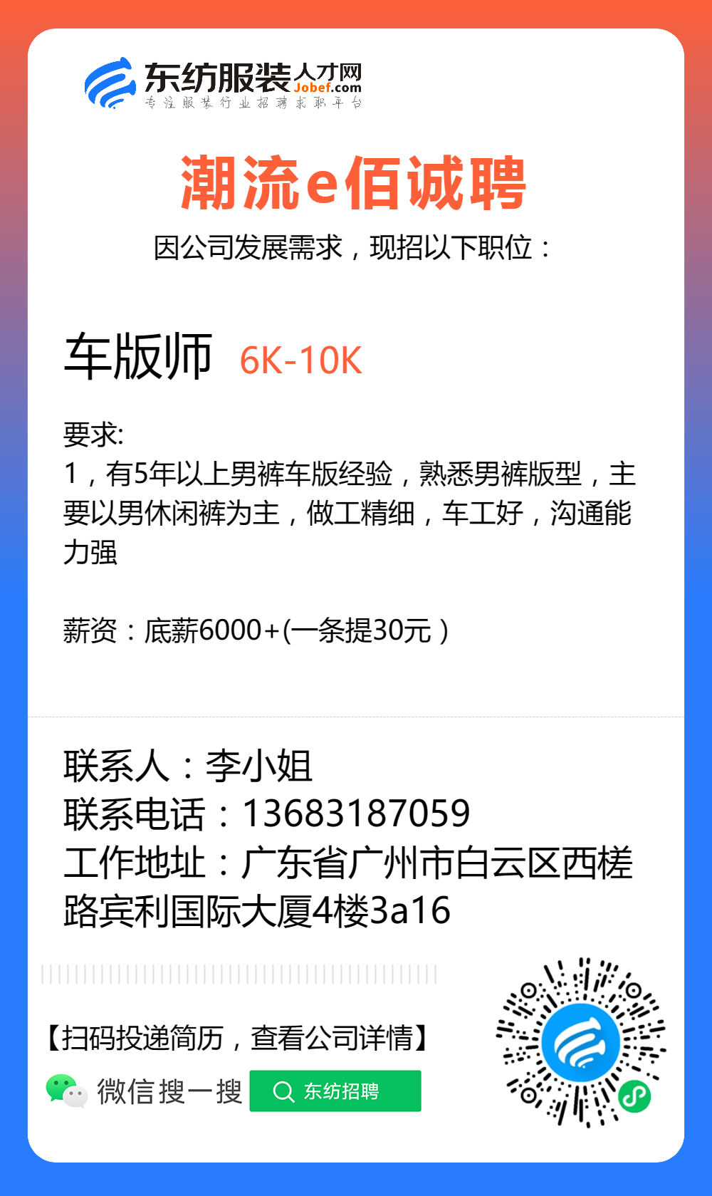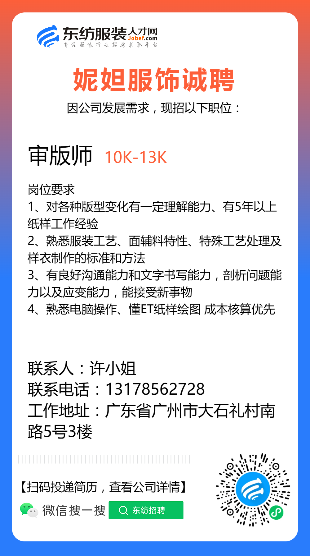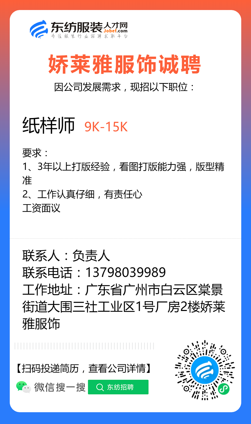 服装招聘·技术类丨8. 25 号,打版师、车版师……