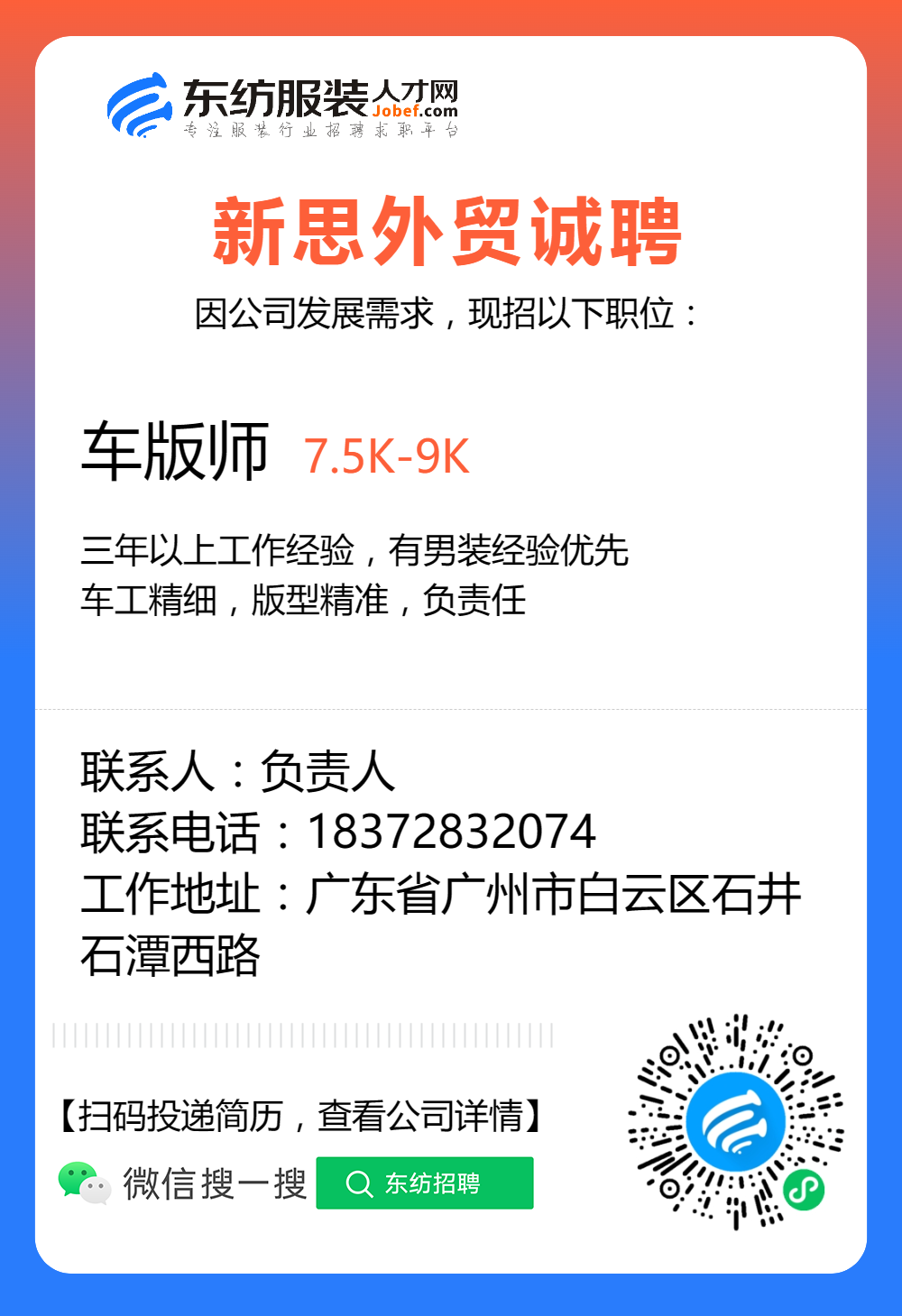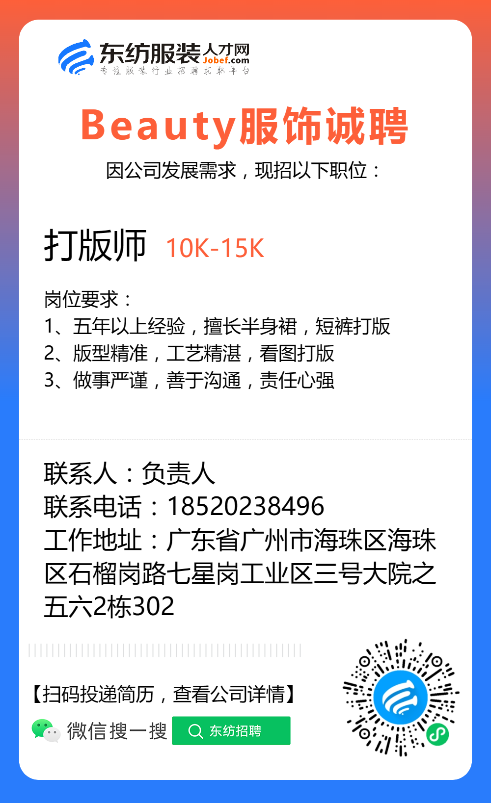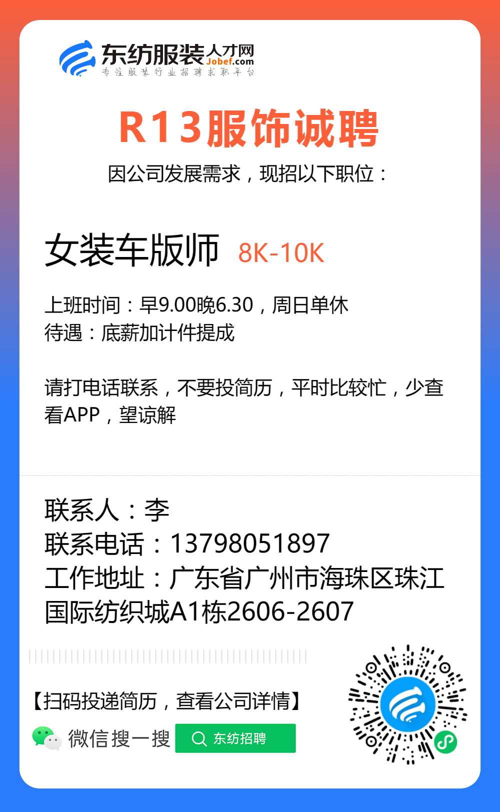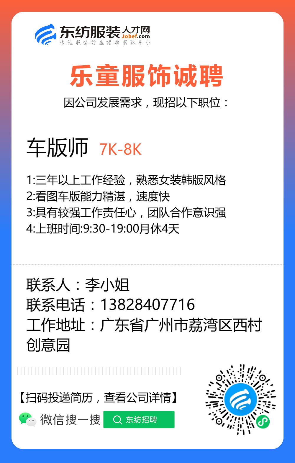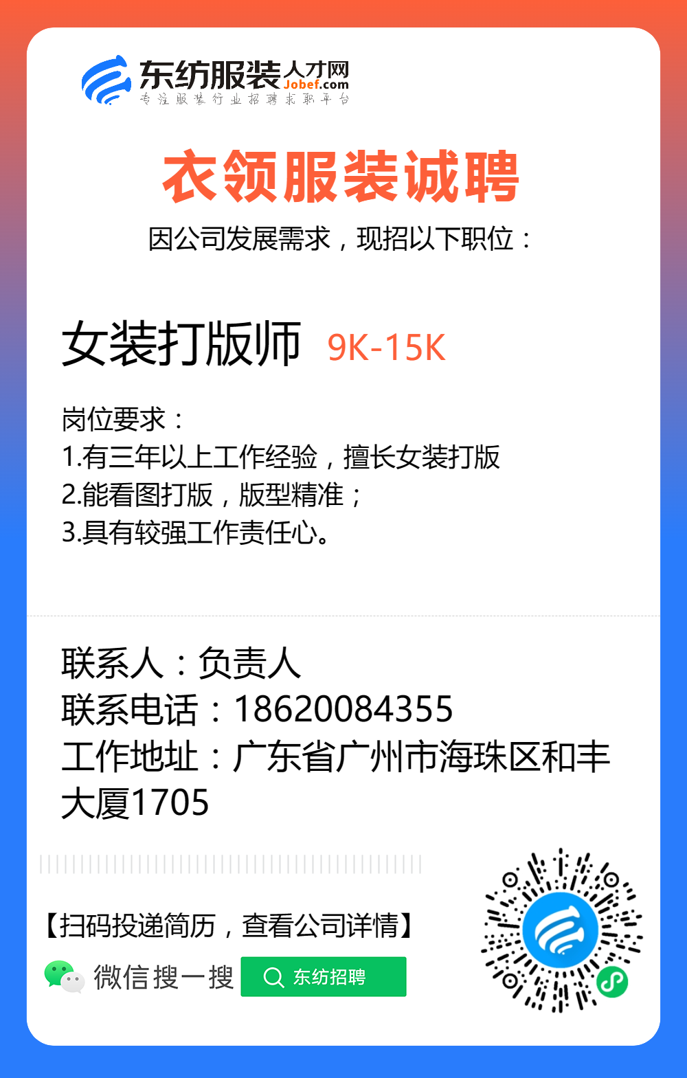 服装招聘·技术类丨8. 25 号,打版师、车版师……