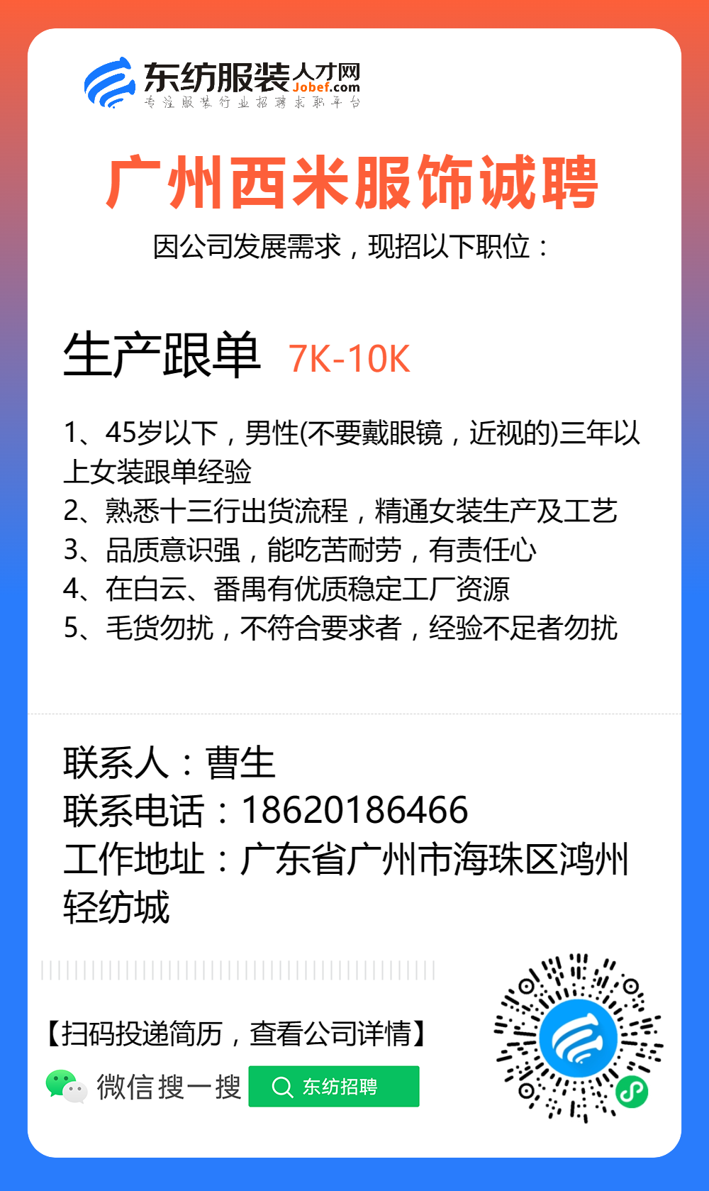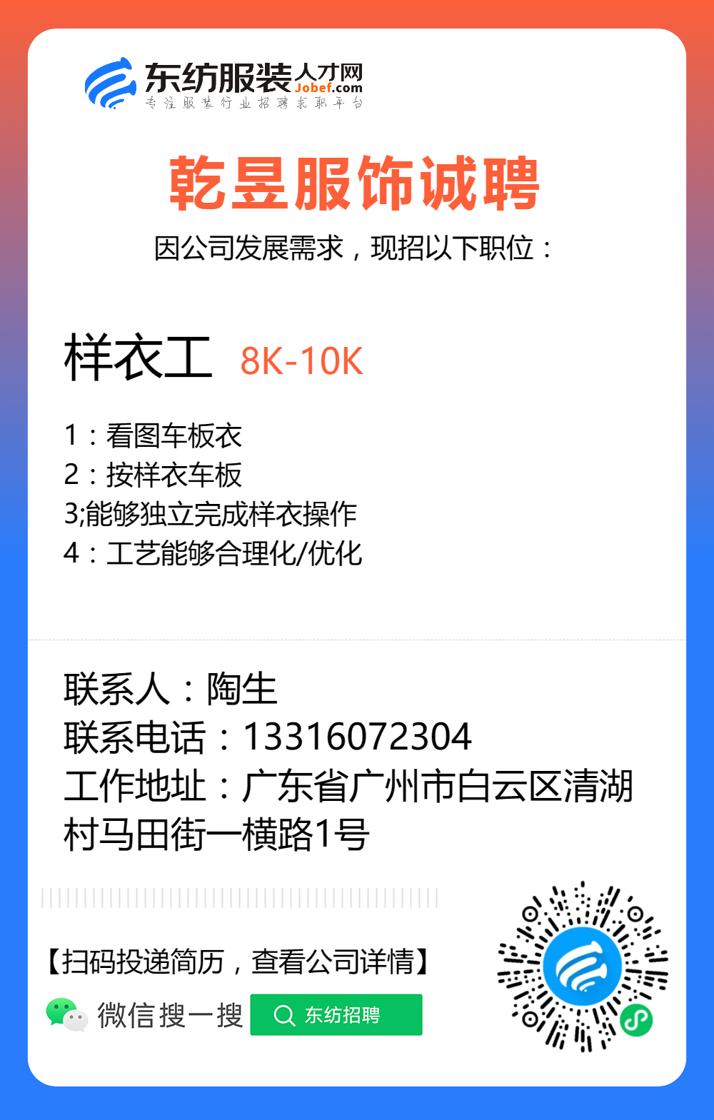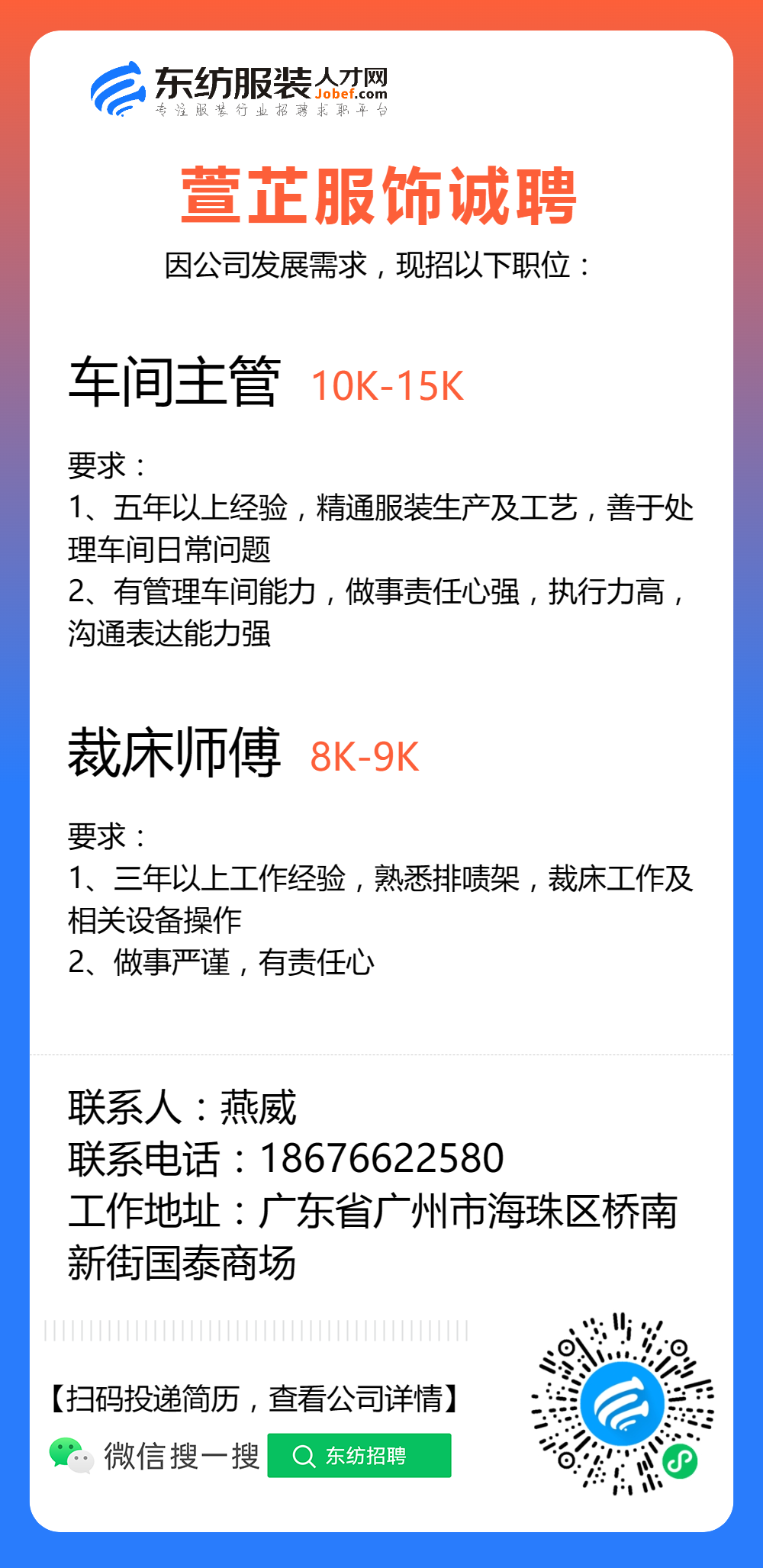服装招聘·工厂类丨8. 25 号,跟单、采购、车位、裁床、尾部……