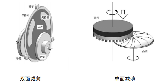 晶圆背面减薄是一步重要的晶圆制造工艺,目的是去除晶圆背面多余材料,以有效减小晶圆封装体积,降低热阻,提高器件的散热性能,降低封装后芯片因受热不均而开裂的风险,提高产品可靠性;同时,减薄后的芯片机械性能与电气性能也得到显著提高。晶圆背面减薄技术有很多种,如磨削、抛光、干式抛光、电化学腐蚀、湿法腐蚀、等离子辅助化学腐蚀和常压等离子腐蚀等。将从晶圆厂出来的晶圆进行背面研磨,来减薄晶圆达到封装需要的厚度。磨片时,需要在正面贴胶带保护电路区域,同时研磨背面。研磨之后,去除胶带,测量厚度;目前已经成功应用于晶圆制备的磨削工艺有转台式磨削、晶圆旋转磨削、双面磨削、TAIKO磨削、化学机械磨削、抛光磨削和行星盘磨削等。确认减薄后的基底厚度分布情况,是否满足下一步工艺需要。通常采用红外干涉的方式从背面检测基底或从正面切割道穿透晶圆基底部分来进行厚度的检测与计算。