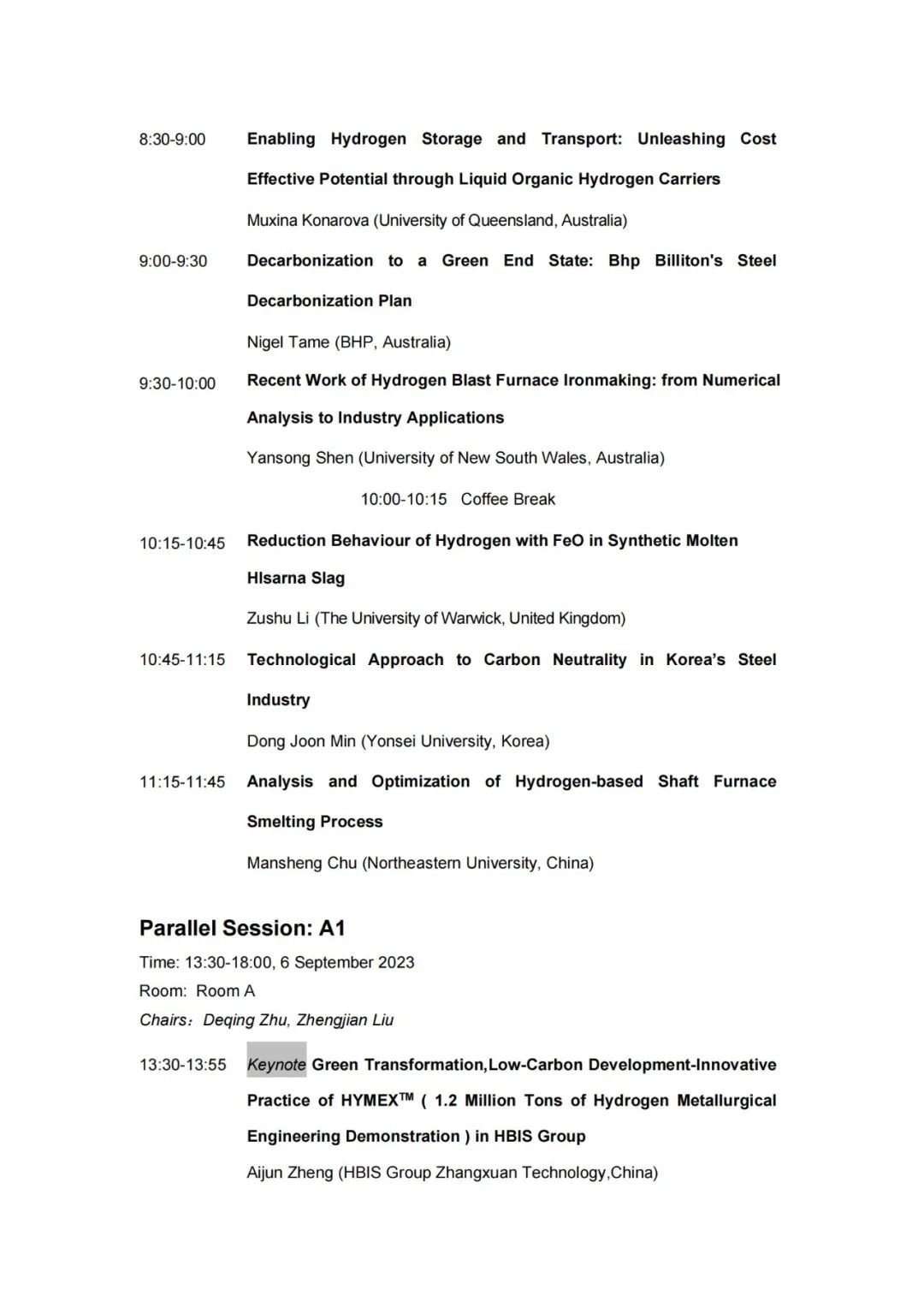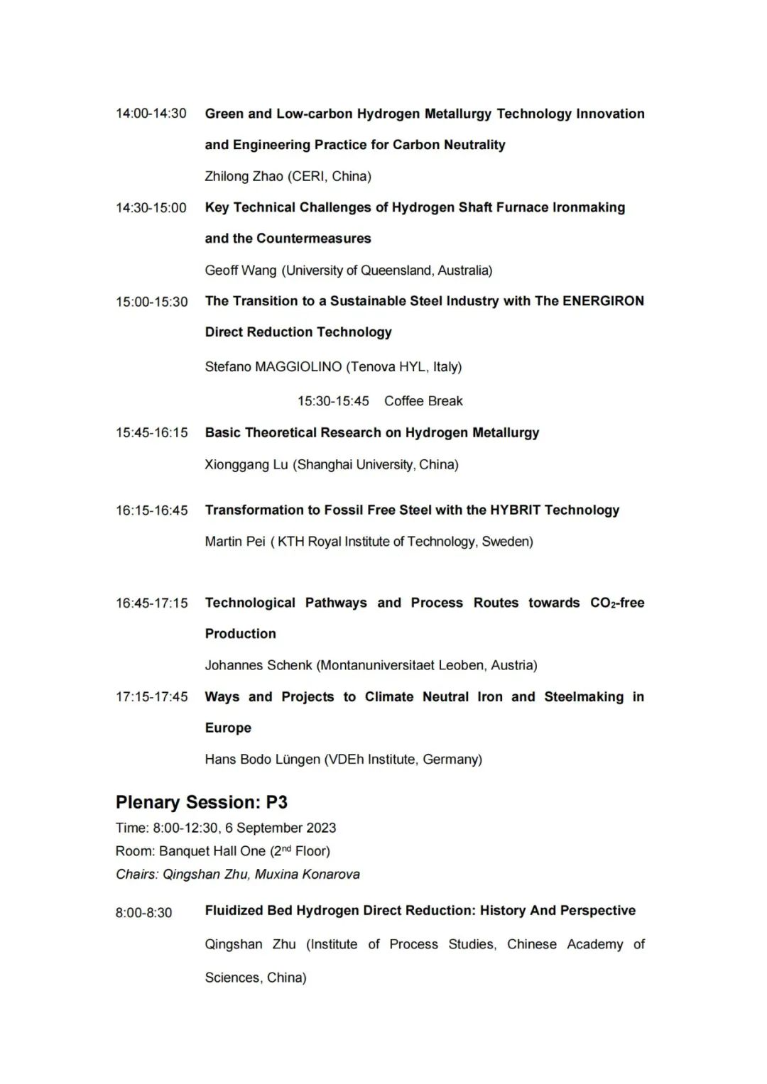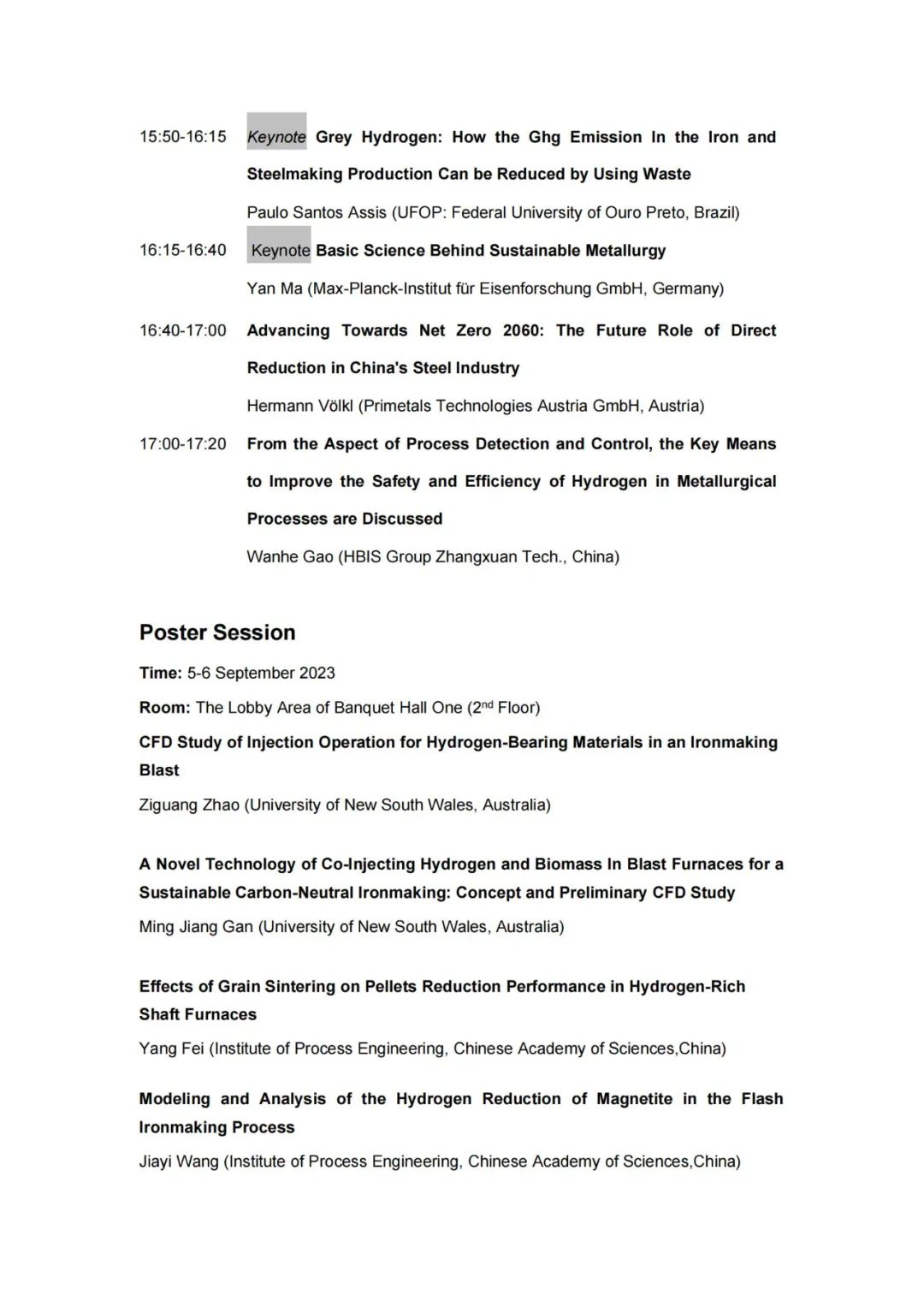 技术日程 | 2023年氢冶金国际研讨会