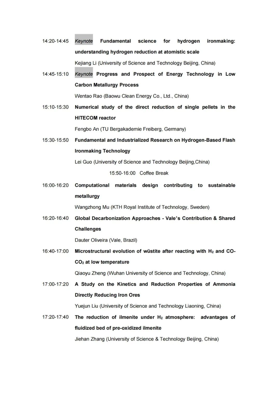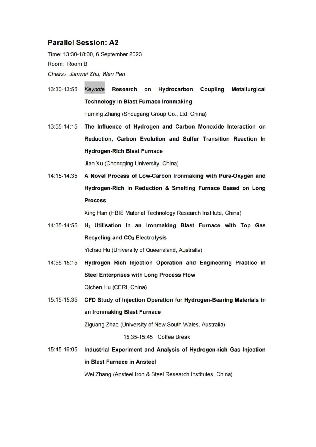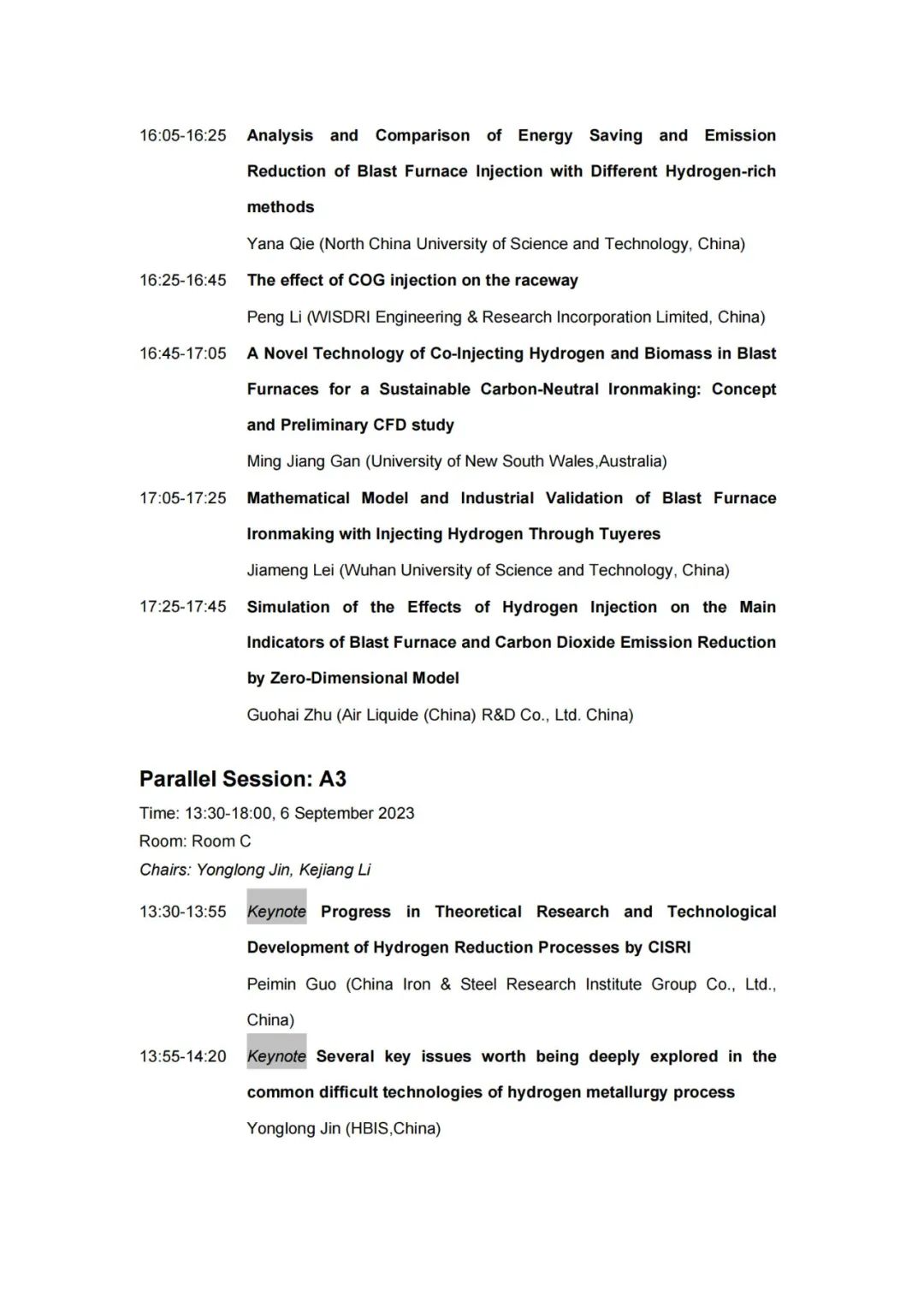 技术日程 | 2023年氢冶金国际研讨会