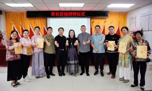同时,在参会人员的见证下顺利举行了“贺氏剪纸”第四代传承人的收徒仪式。