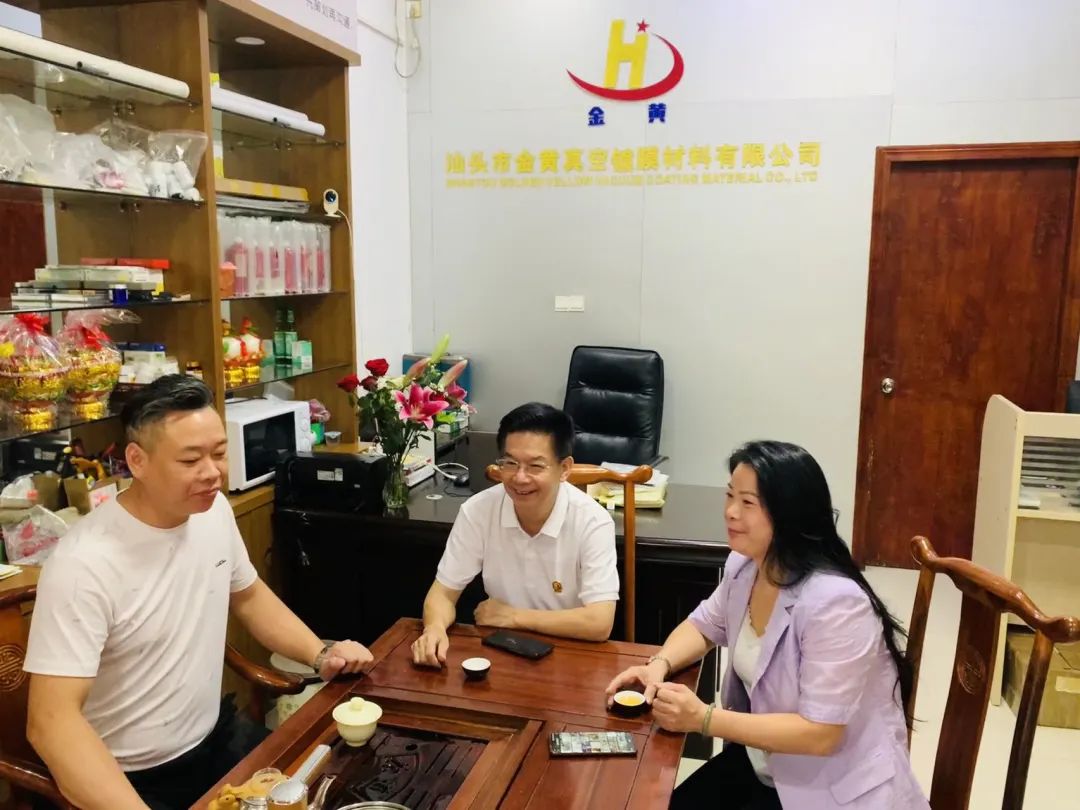 8月25日,协会轮值会长王键丰带领副会长兼秘书长张振强、副秘书长潘冰璇及秘书处工作人员先后调研考察了汕头市彪源塑胶制品有限公司、汕头市华川贸易有限公司、汕头市金黄真空镀膜材料有限公司三家企业,与企业负责人亲切交流,对企业的经营状况和发展难点痛点进行关心了解,听取企业家们对产业发展的建议并询问需要协会向政府和有关部门反映的意见。倡导企业增强忧患意识,重视研发创新,加强转型升级,防止玩具产业向南亚、东南亚转移;要求会员企业要进一步增强社会责任意识,弘扬奉献精神,热心协会事业,抱团推动澄海玩具创意产业高质量发展!
