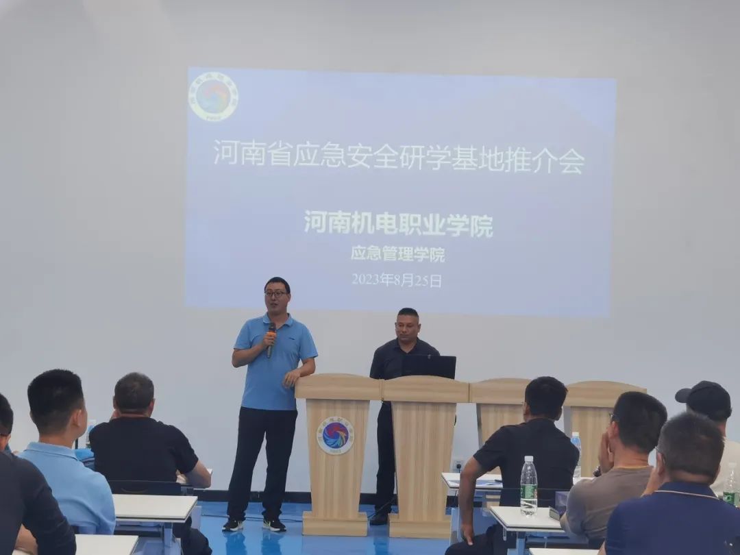 为加快推进应急专业集群建设,加强应急安全教育宣传和科普推广,2023年8月25日,河南省应急安全研学基地推介活动在河南机电职业学院应急培训基地举行。河南省中小学研学团队40余人到我校应急管理学院考查并参观体验应急安全考培基地。