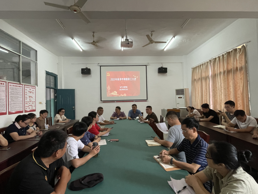 8月23日上午,在明辨楼102党员活动室,电气工程学院召开2023年秋季学期教职工大会,会议由电气工程学院院长黄锦文主持,全体教职工参加。