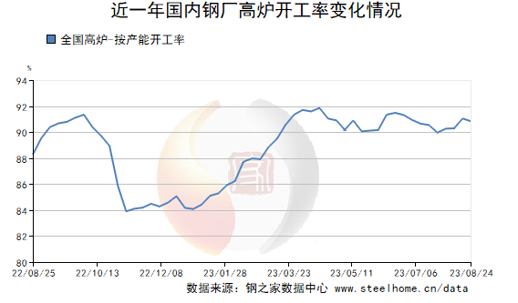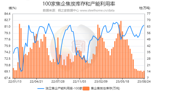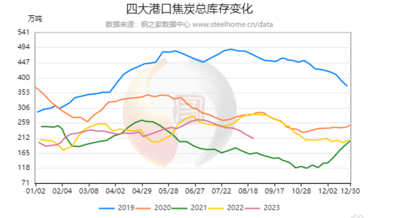 据钢之家网站统计,截至8月24日,全国46个主要港口铁矿石库存量为11860万吨,较8月17日增加170万吨。其中贸易矿库存7460增100万吨,块矿1580增80万吨,球团矿550增30万吨,精粉990增40万吨。本周全国46个主要港口日均疏港量较上周增加4万吨至323万吨;北方五大港(青岛港、日照港、天津港、曹妃甸、京唐港)铁矿石日均疏港量较上周减少3万吨至146万吨,日均到货量为122万吨,较上周减少64万吨。