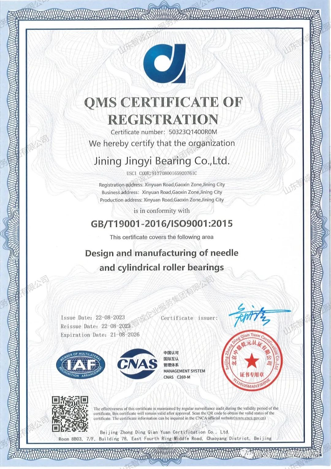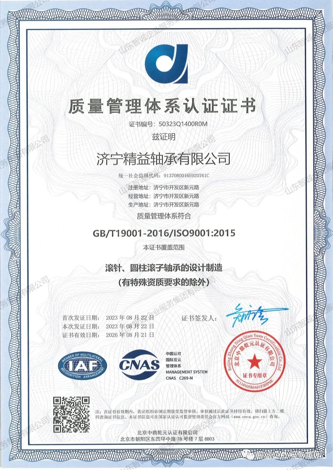 济宁精益轴承有限公司通过国家认监委备案机构的ISO9001质量管理体系认证审核