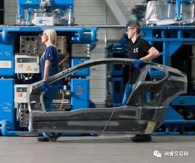 上图,湿法模压工艺被用来生产BMW7系的“Carbon Core(碳芯)”乘客舱组件,为造型复杂度较低的零件提供更短的生产周期和更低的成本。