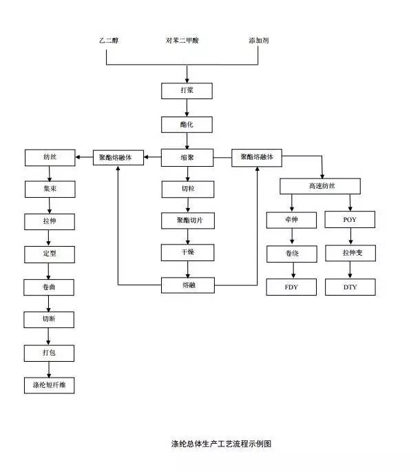 1、涤纶总体生产工艺流程