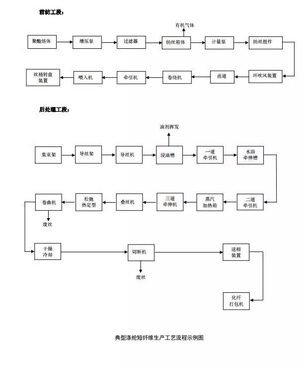 涤纶与粘胶的典型生产工艺流程整理如下:
