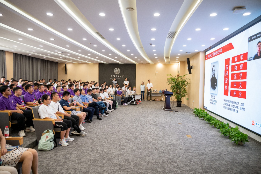 樊春海代表学院向全体本科新生表达了诚挚的欢迎,随后以“天演在化,功成在学”为主题,从“认识化院”“读懂化学”“学生成长”等三个板块开展“院长第一课”授课。