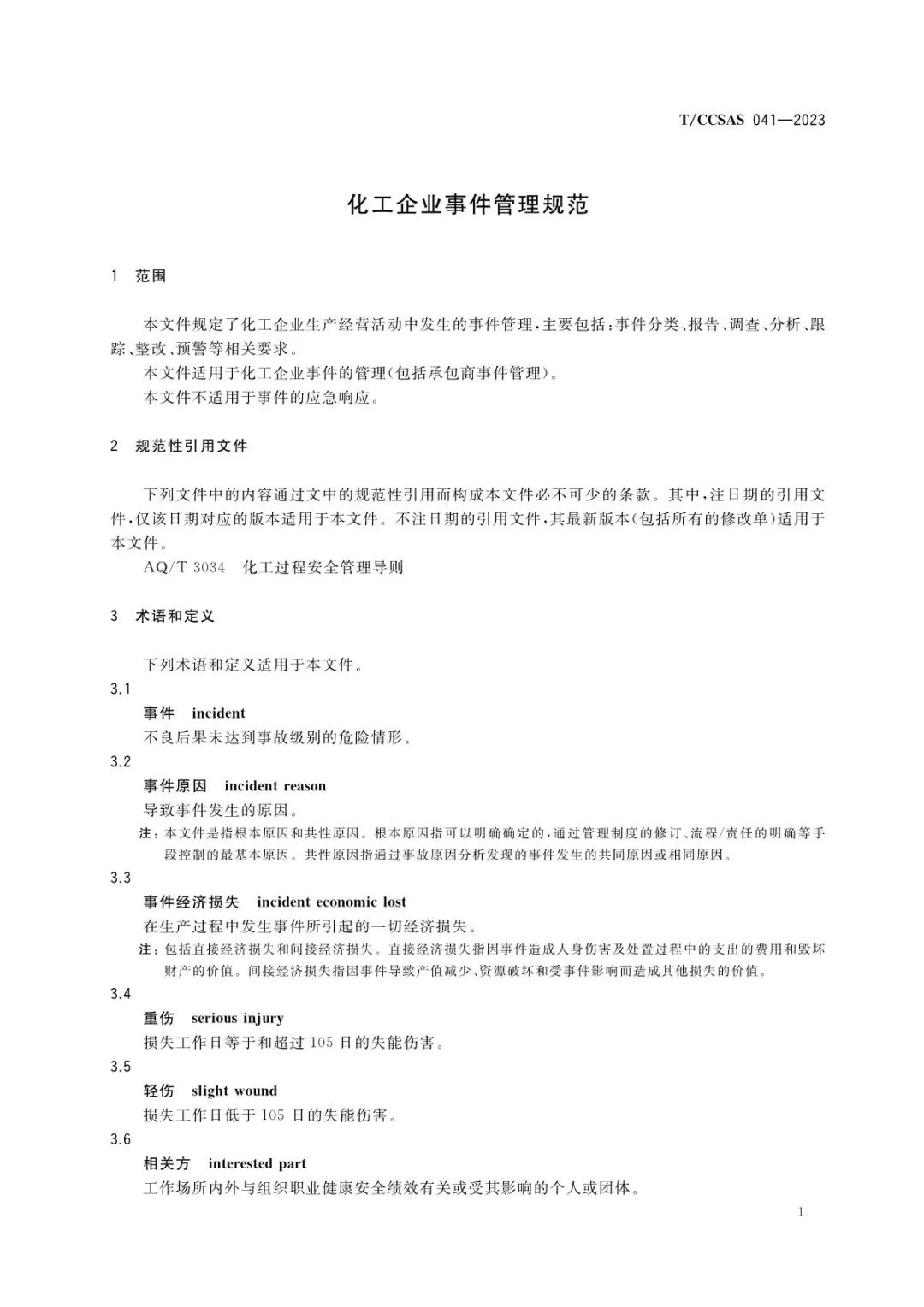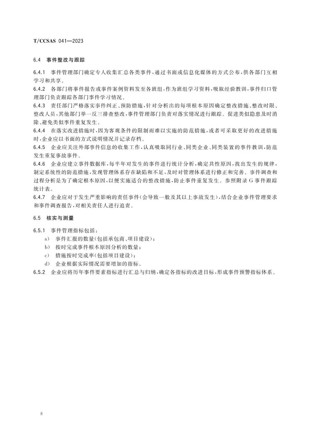 近些年,在事件管理方面,国内化工企业借鉴了欧美国家过程安全管理相关的法规及标准要求,建立事件相关管理制度,明确了事件分类、报告、分析与跟踪等要求,事件管理水平有了较大提升。《化工企业事件管理规范》(T/CCSAS 041-2023)在我国现行有关法律法规、部门规章和标准的基础上,借鉴国内外优秀石油、化工企业对于事件管理的最佳实践编制而成,规定了化工企业事件管理的基本要求和工作流程,事件分类、报告、分析与跟踪等方面的管理要求,特别是事件定义、事件调查流程,旨在进一步引导企业事故管理前移,鼓励全员参与事件管理,查找、分析引起事件的直接原因、根本原因,从管理、工程技术和教育培训等方面制定系统性的改进措施,持续改进,从而避免类似事件再次发生。
