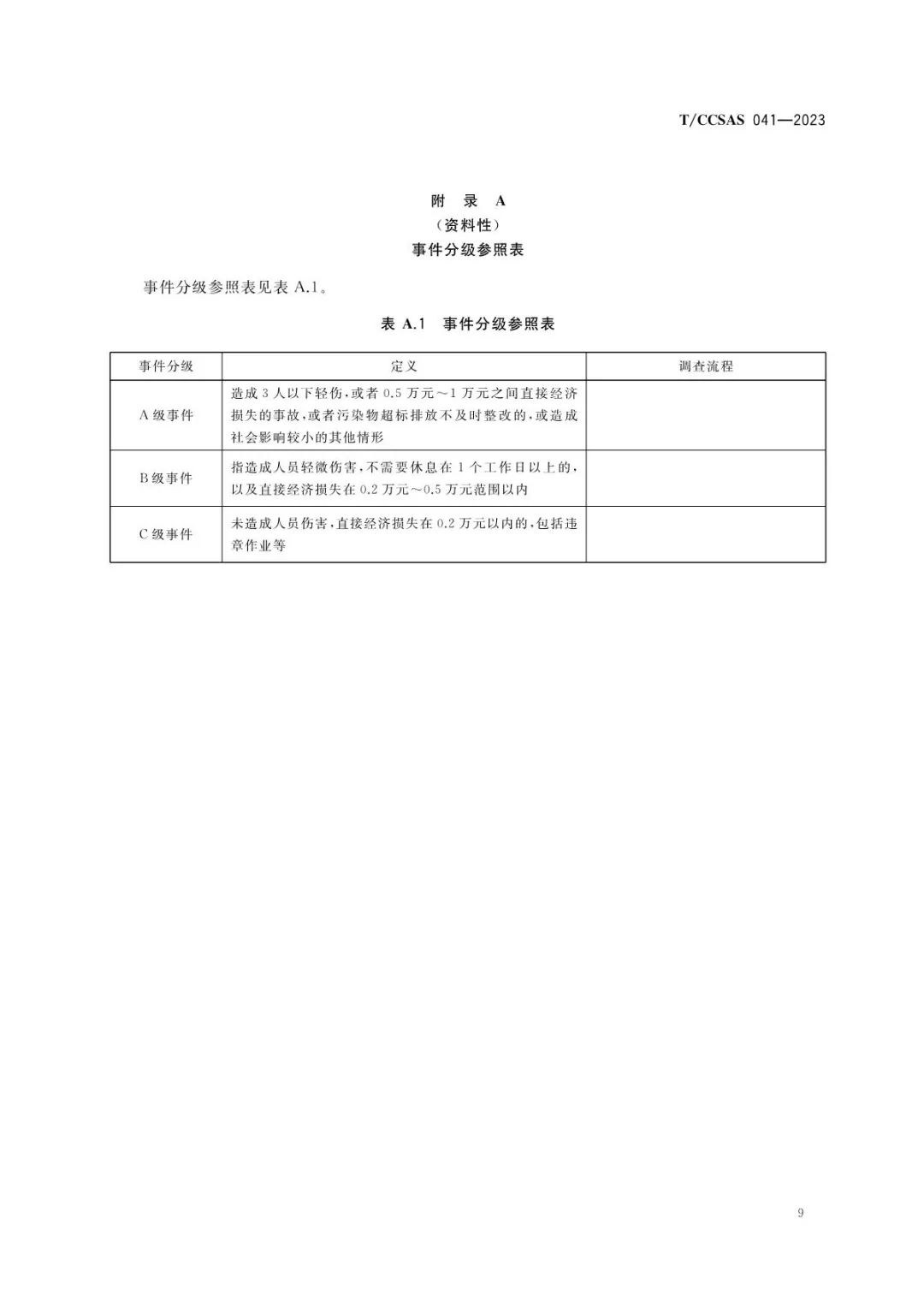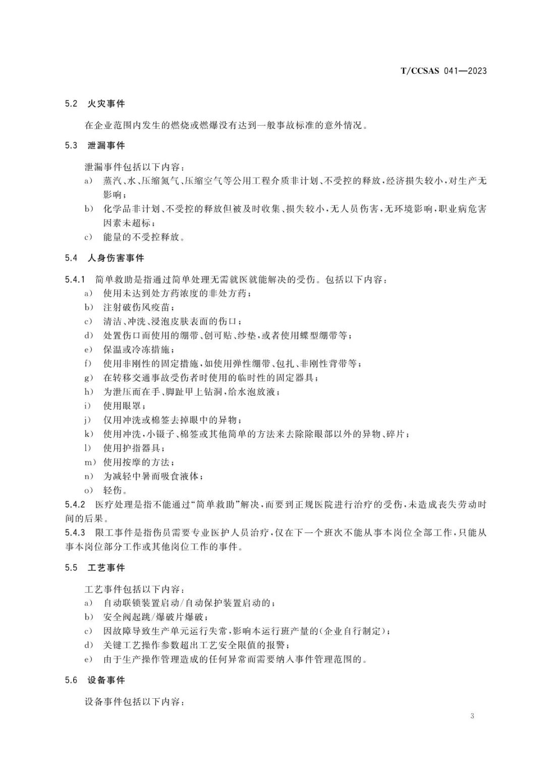 该标准结合《化工过程安全管理导则》(AQ/T 3034-2022),明确将化工企业事件分为9大类,即:火灾事件、泄漏事件、人身伤害事件、工艺事件、设备事件、电气事件、仪表事件、非计划停车、未遂事件。标准提出,企业宜根据实际情况及造成的人员伤害或者直接经济损失等情况,制定企业事件分级标准。