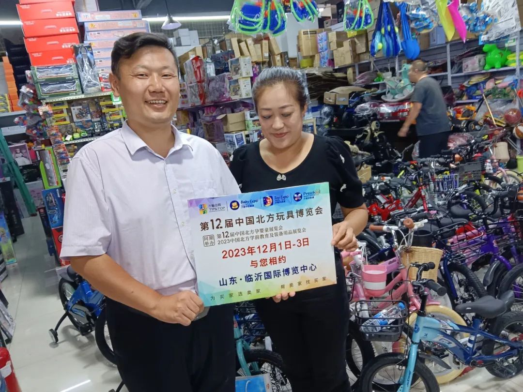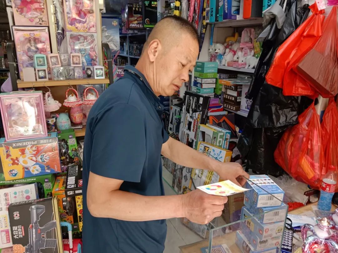 推广人员向通辽市场的玩具商户详细介绍了第12届中国北方玩具博览会的规模及对采购商的服务,并派发邀请函邀请商家到会参观采购。让我们一起来看看认真阅读的采购商吧