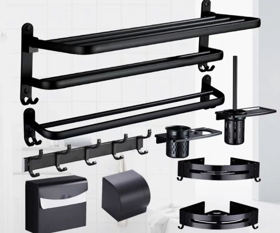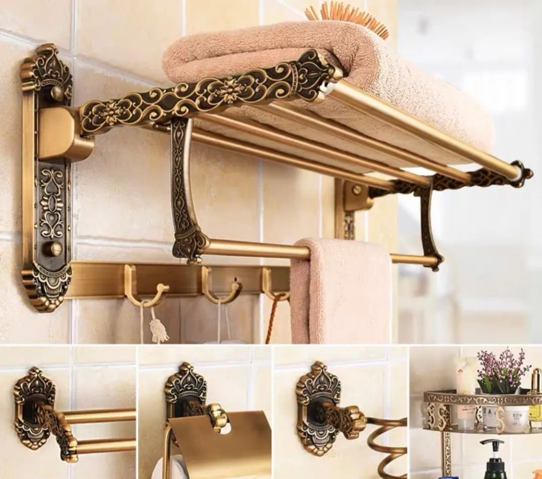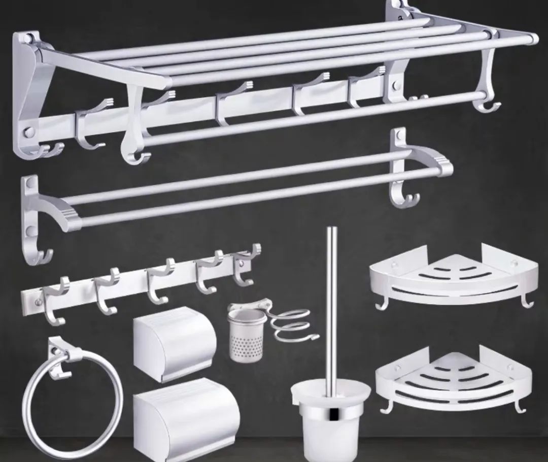 龙头、花洒、置物架、角阀、皂网、衣钩等。