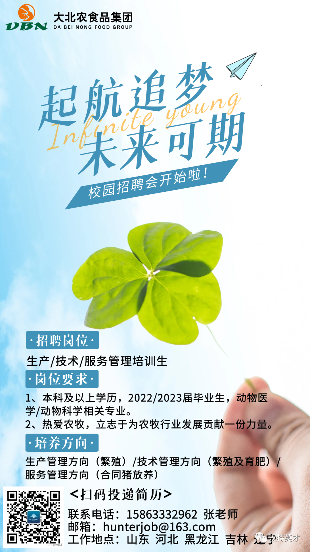 人,是大北农发展的唯一资源!现诚邀2022/2023届优秀毕业生,立志于农牧行业发展的有志之士报国兴农,争创第一,共同发展!
