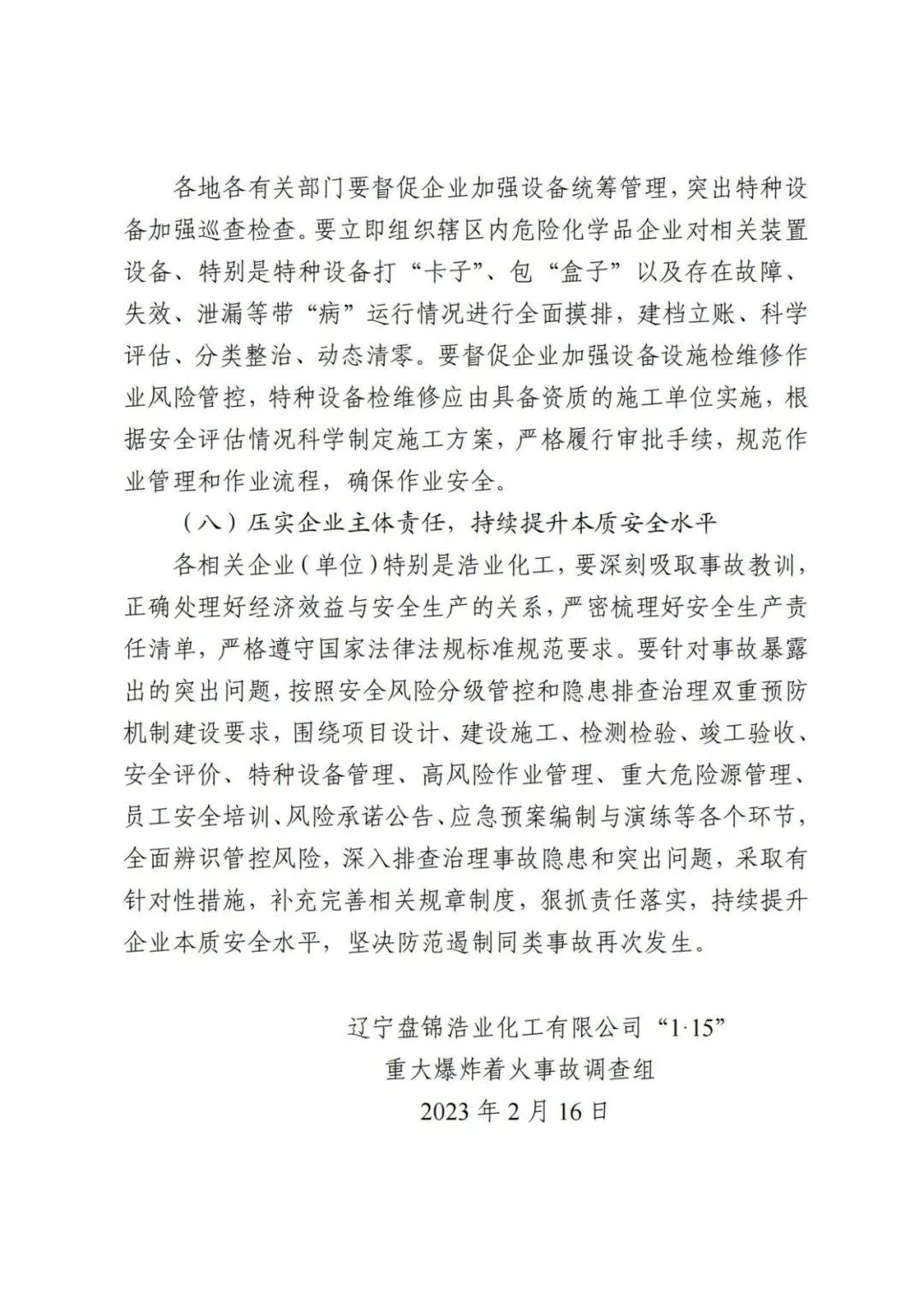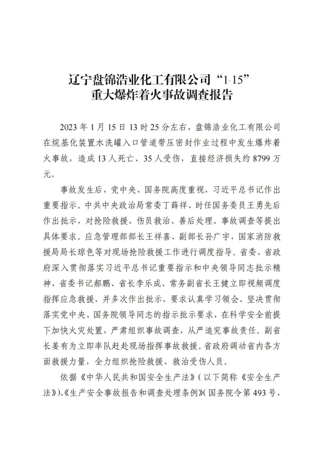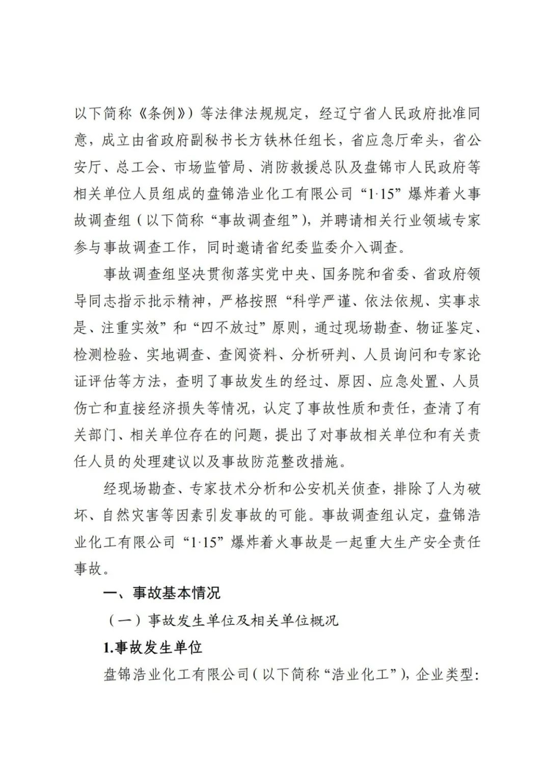 盘锦浩业化工有限公司“1·15”重大爆炸着火事故调查报告