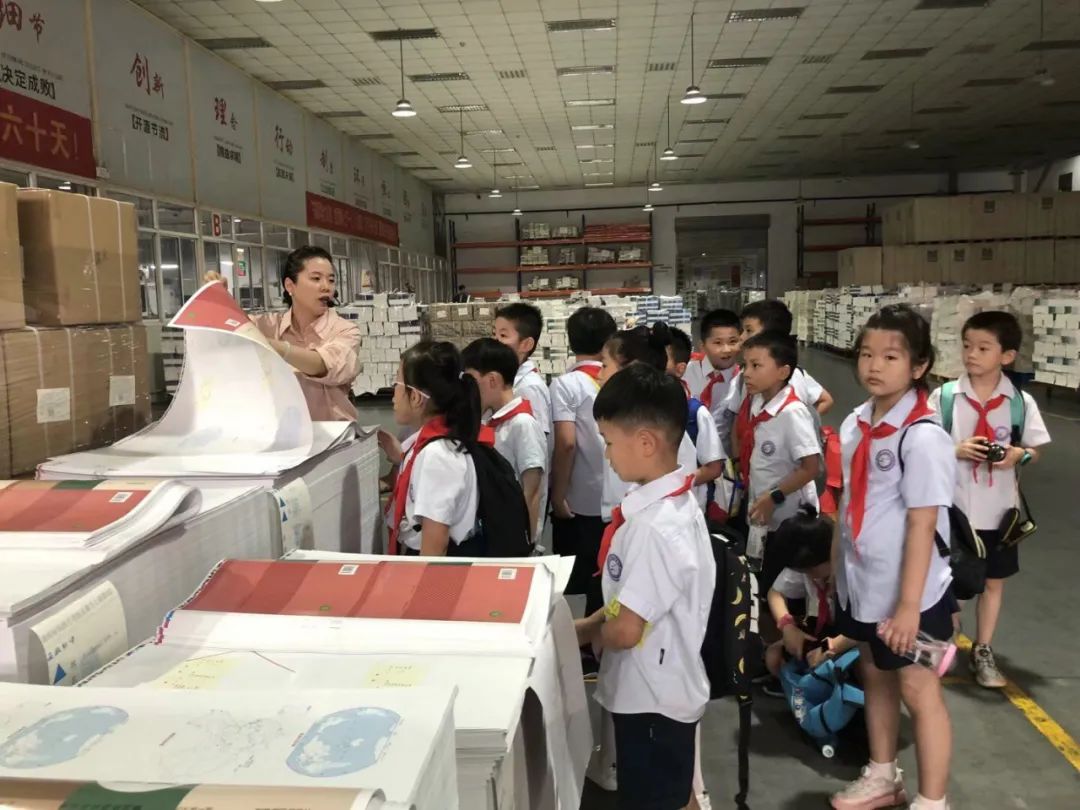 百闻不如一见,为了让孩子们有更真实的感受,戴老师带着孩子们走进了书本制造车间,让他们亲眼看看一本书是如何制造出来的。可还没进入车间,大家就听见了巨大的轰鸣声,还伴有过于浓烈的墨香,也有不少孩子说是“臭”。然而,工人们就是在机器巨大的轰鸣中和“臭味“中专心有序地工作着,有的目不转睛地盯着眼前的工作,一盯就是一天,除了吃饭上厕所;有的开着运书车跑起来神气十足实则汗流浃背,据说他们一天至少来来回回跑几百趟;还有的需要不断弯腰、起身,整理好像永远也整理不完的书籍。戴老师说,因为新华印刷厂要负责全国所有学校的教材,所以每到寒暑假,孩子们正在休息的时候,他们却要加班加点工作,为的是能在开学前把每一本新书送到每一位学生手上。看到这些,相信当这些孩子再捧起书本时,心里一定有沉甸甸的感觉,那种感觉应该就是珍惜!珍惜书本,珍惜每一个人的劳动成果,珍惜眼前美好的生活!