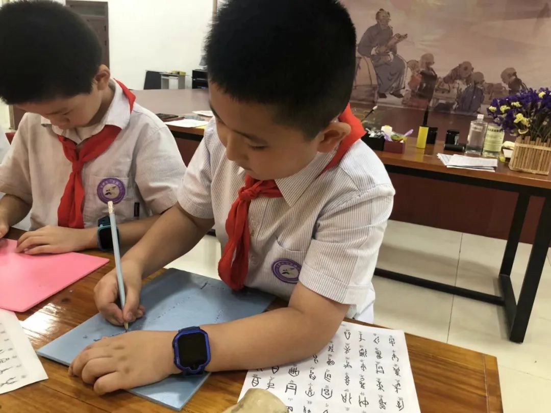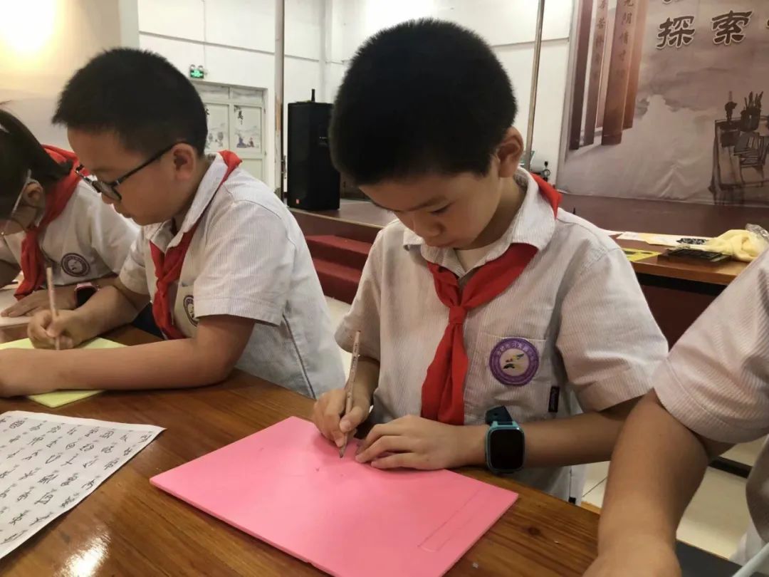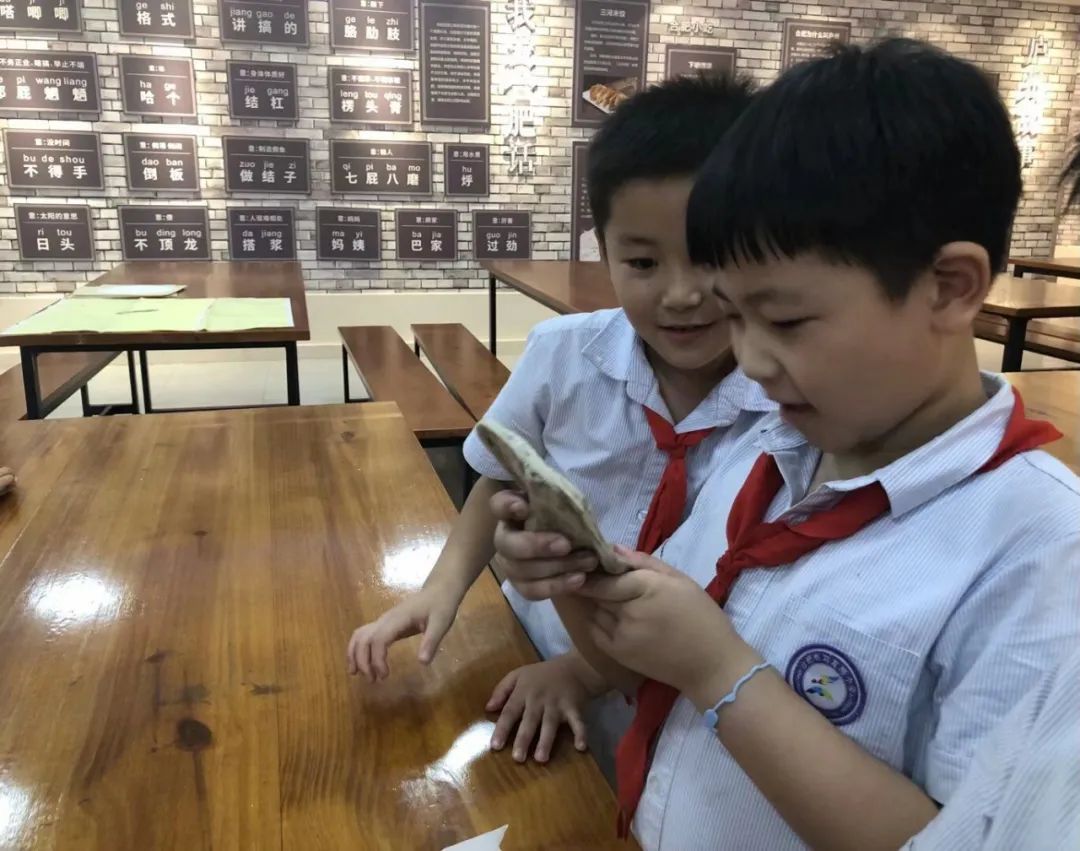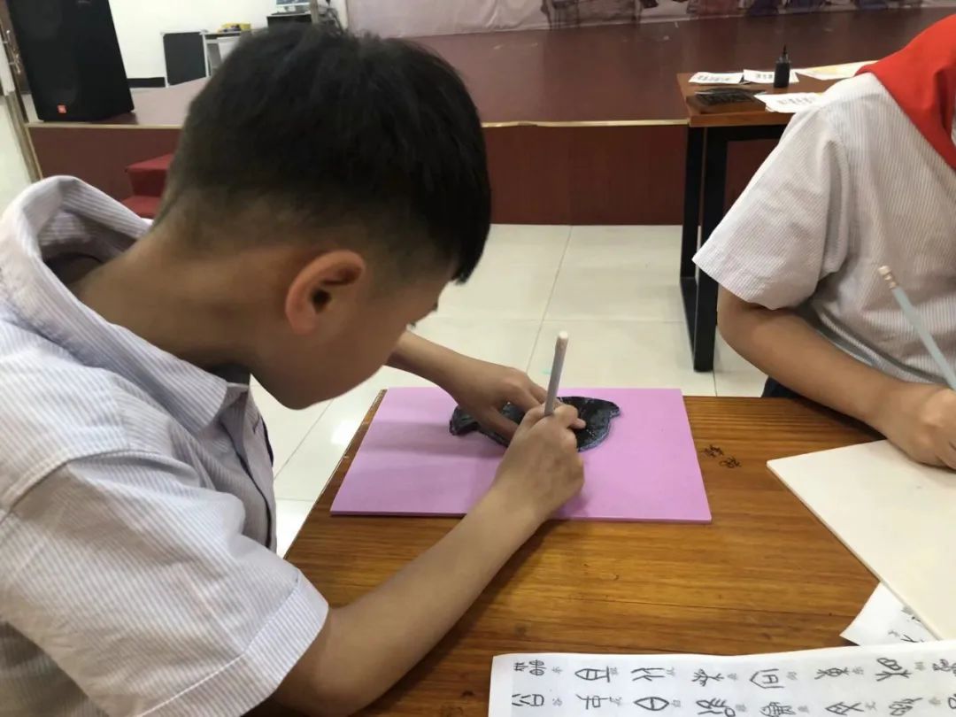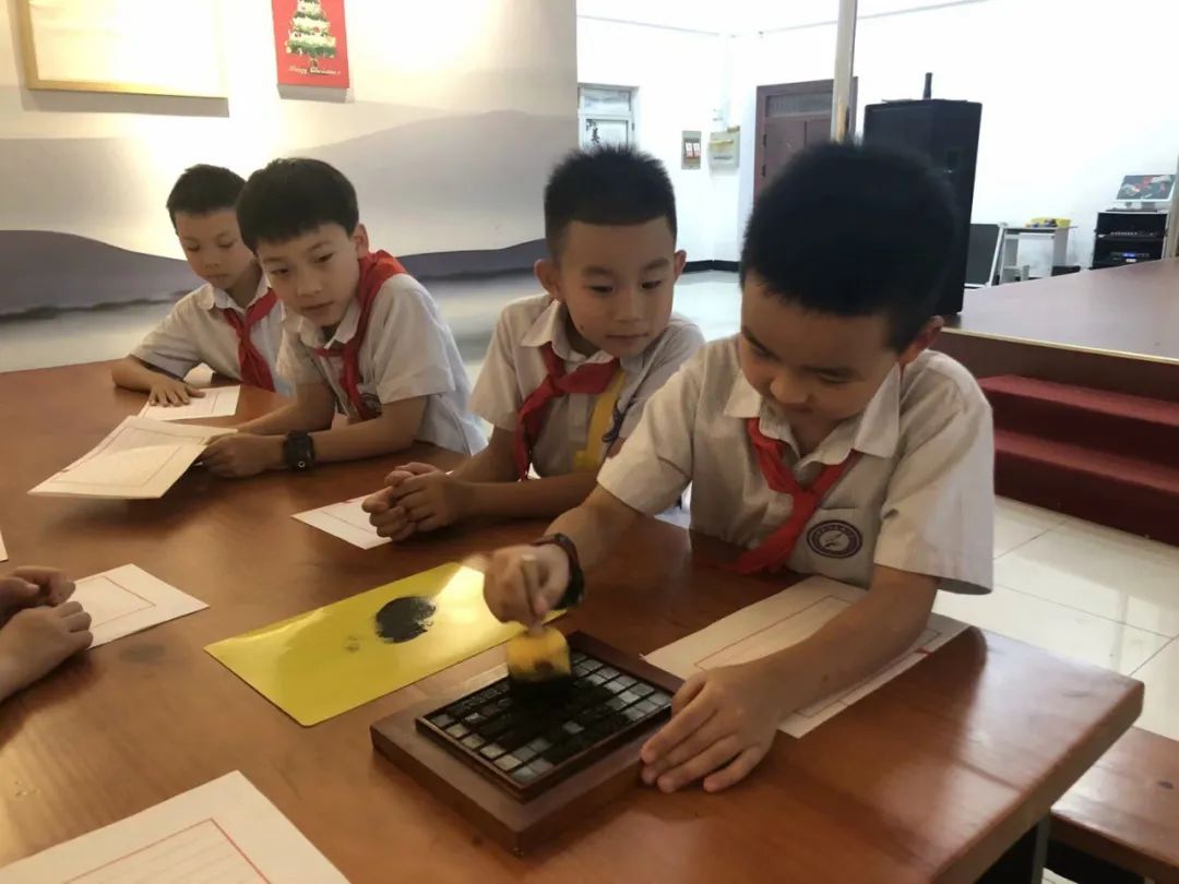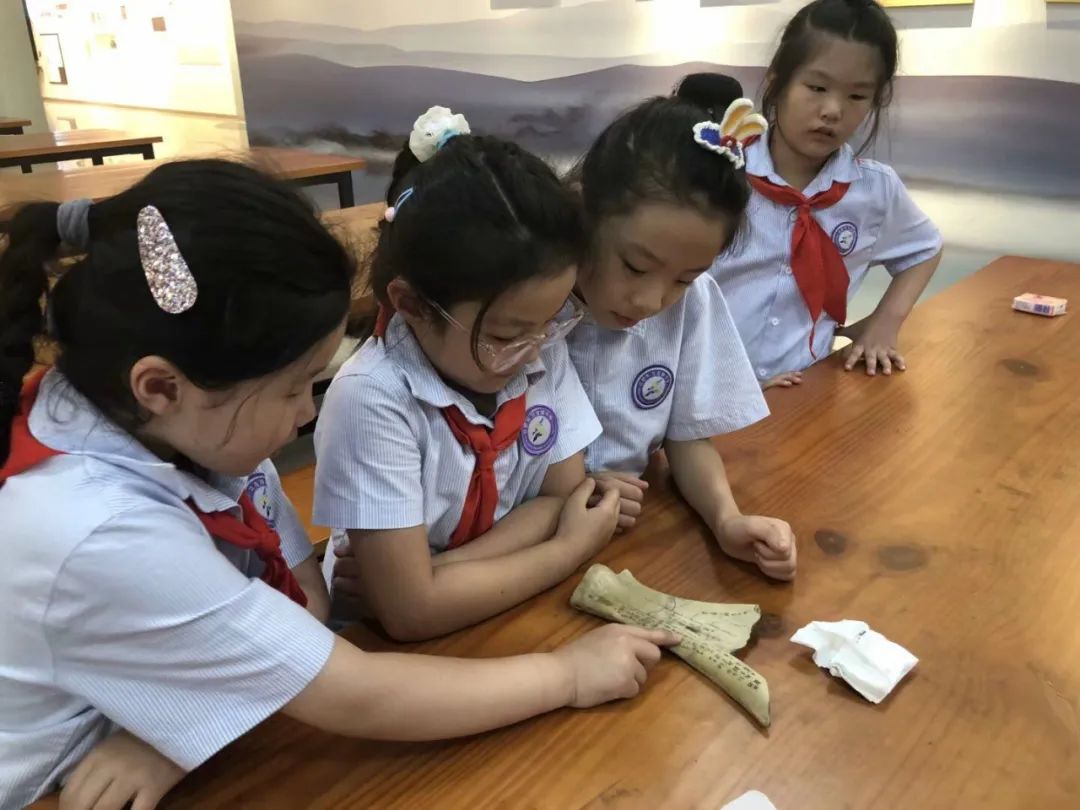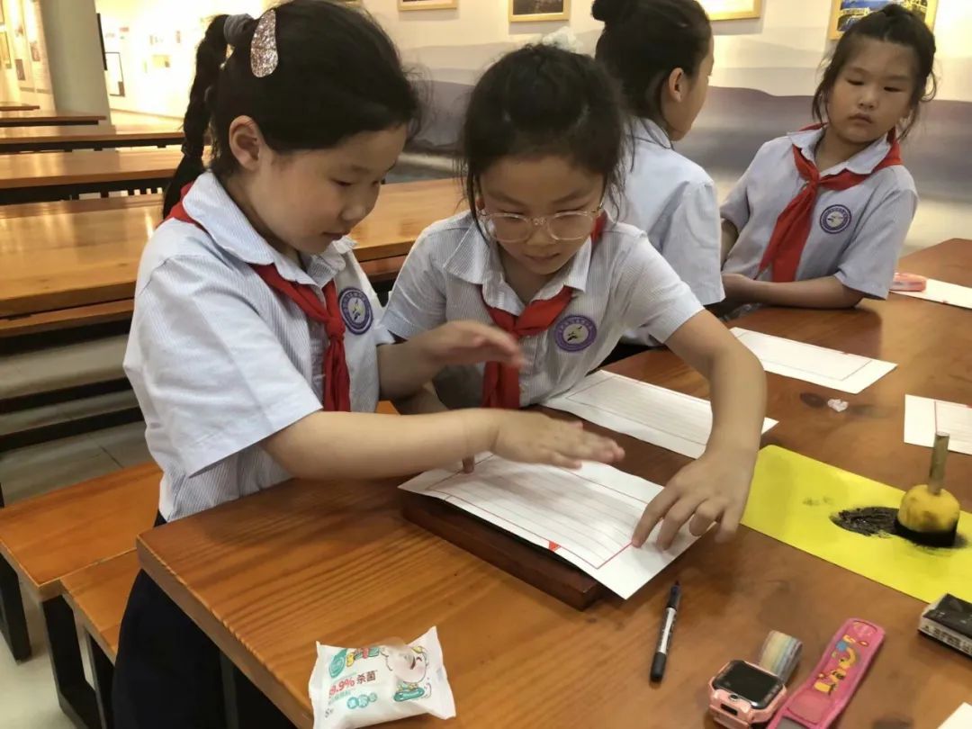 在老师的指导下,他们通过认识甲骨文、选择制作不同形状的兽骨并在上面“刻”上自己喜欢的甲骨文,印刷好后签上自己的姓名,这样,一张甲骨文拓印也就完成了。
