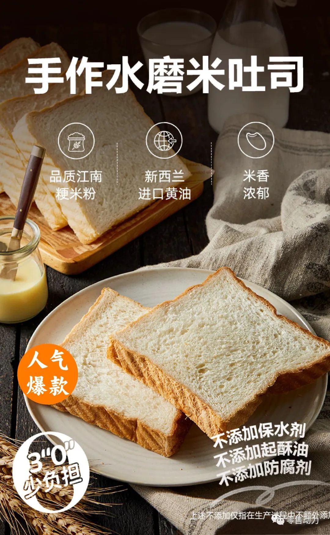 烘焙的变化也是比较大,瑞士卷现在主打产品为原味伯爵瑞士卷,选用100%的动物奶油,简单的配料表。还有手作水磨米麻薯和米吐司,米系列商品我们以往来讲在烘焙用的不是那么多,但是我们在这两家店主打的米系列商品其实也是做了一个差异化,这两个商品也是我们目前烘焙新一盘货当中top10的商品。