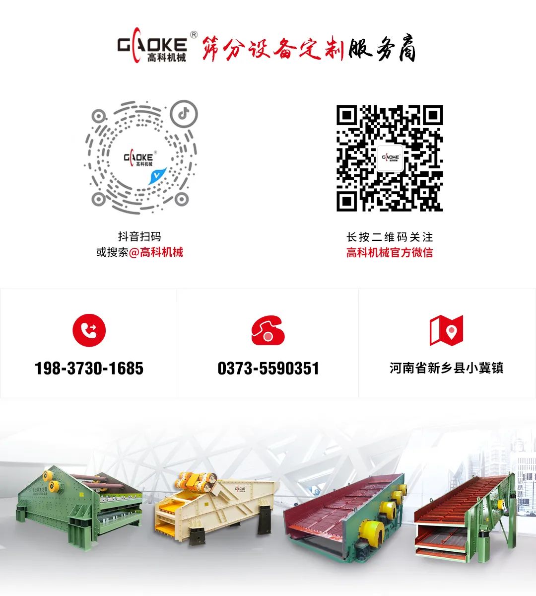 除圆振动筛之外,高科机械强力筛、脱水筛、放矿机、洗砂机等设备也深受客户好评,欢迎前来咨询选购。