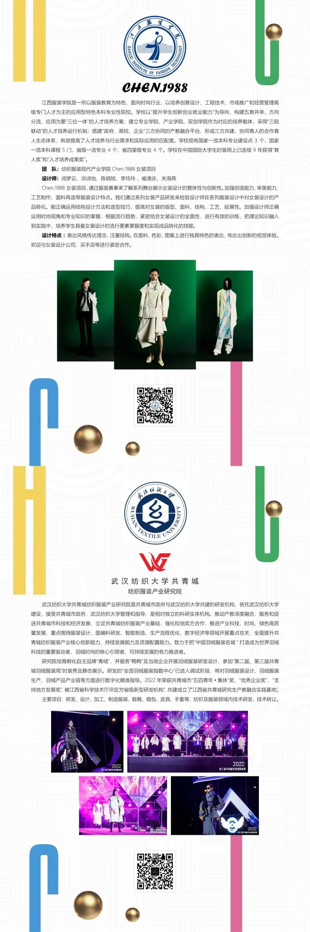 本次公益活动将采取静态展示、交流互动形式亮相,位置在国家会展中心(上海)3号馆“中国服装好设计SHOWROOM X CHIC”专区内(展位号:3X611),共有54平方米展示面积,布置相关作品静态展示宣传区及“纺织之光 X 中国服装好设计”主题、专题区,集中展示来自东华大学、天津工业大学、浙江理工大学、西安工程大学、武汉纺织大学、江西服装学院6所“纺织之光”教育奖励院校设计专业师生(团队)作品及“纺织之光”学生奖获奖学生设计作品。