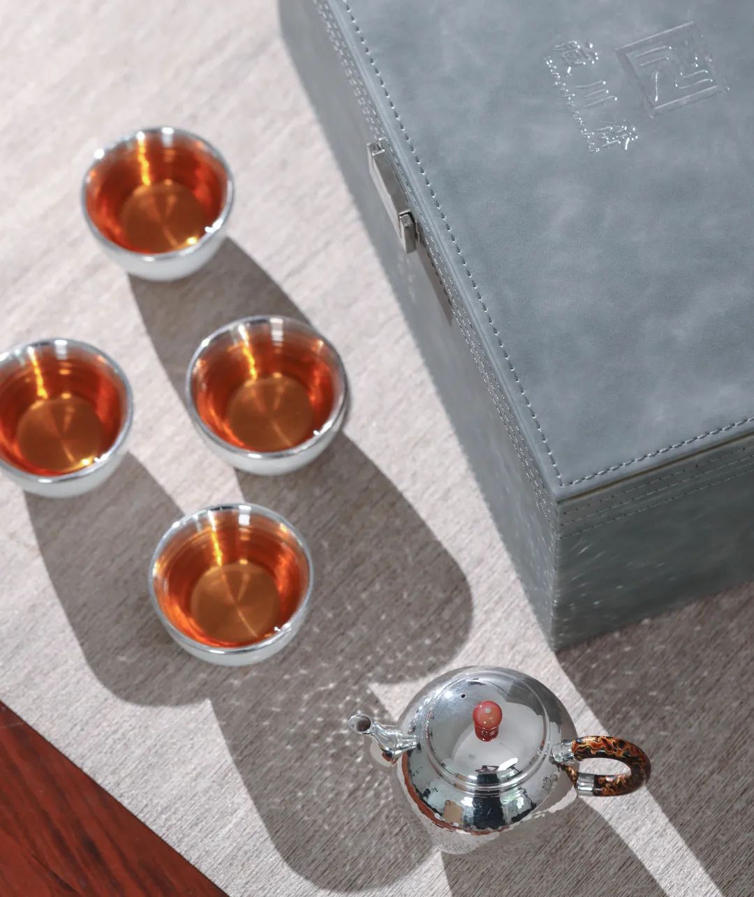 整壶美观大方,工整典雅。看似简单的艺术造型,却传递出匠心打磨的极致与重工,为达到极具装饰效果的肌理,“手落为一锤,四锤成一纹。