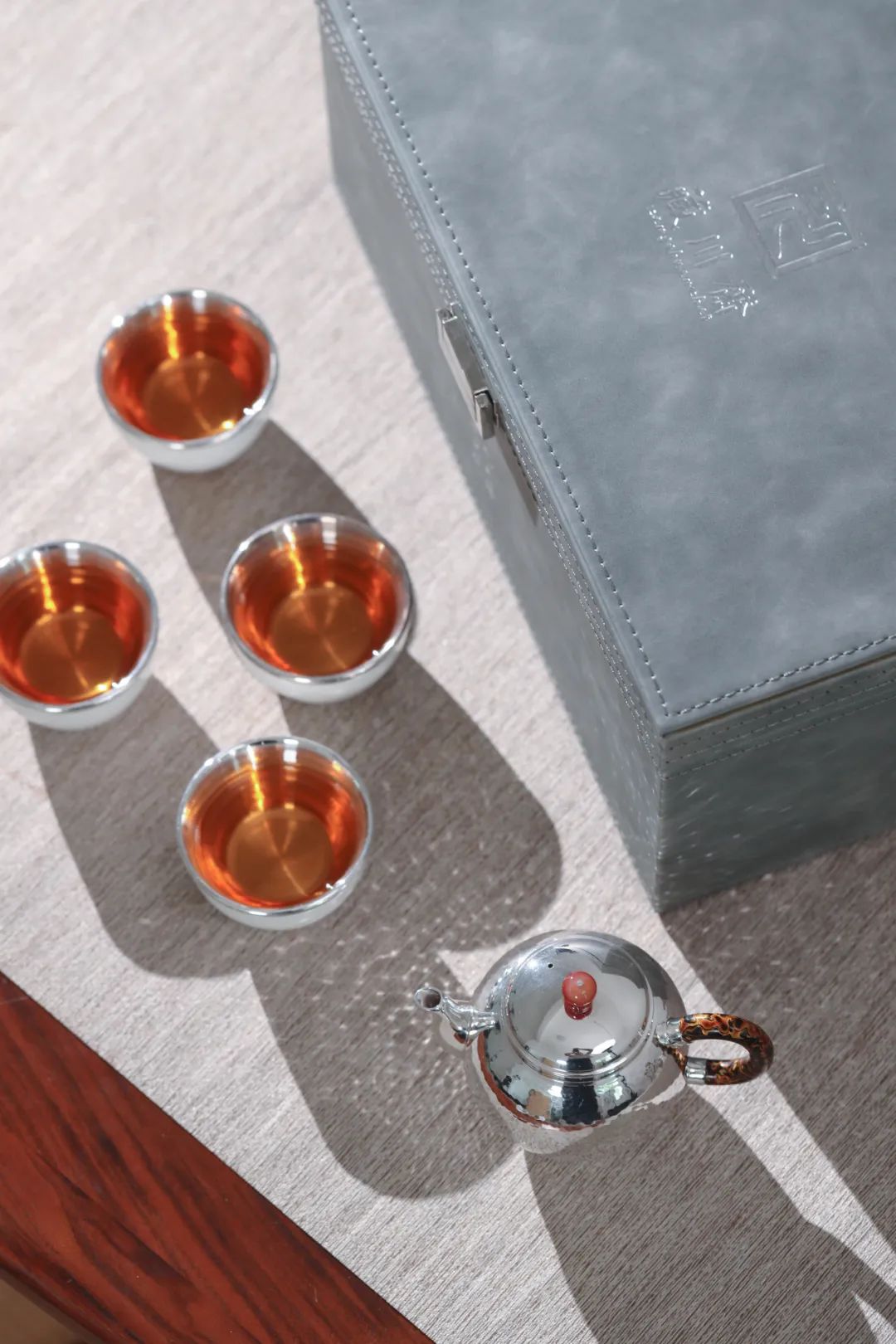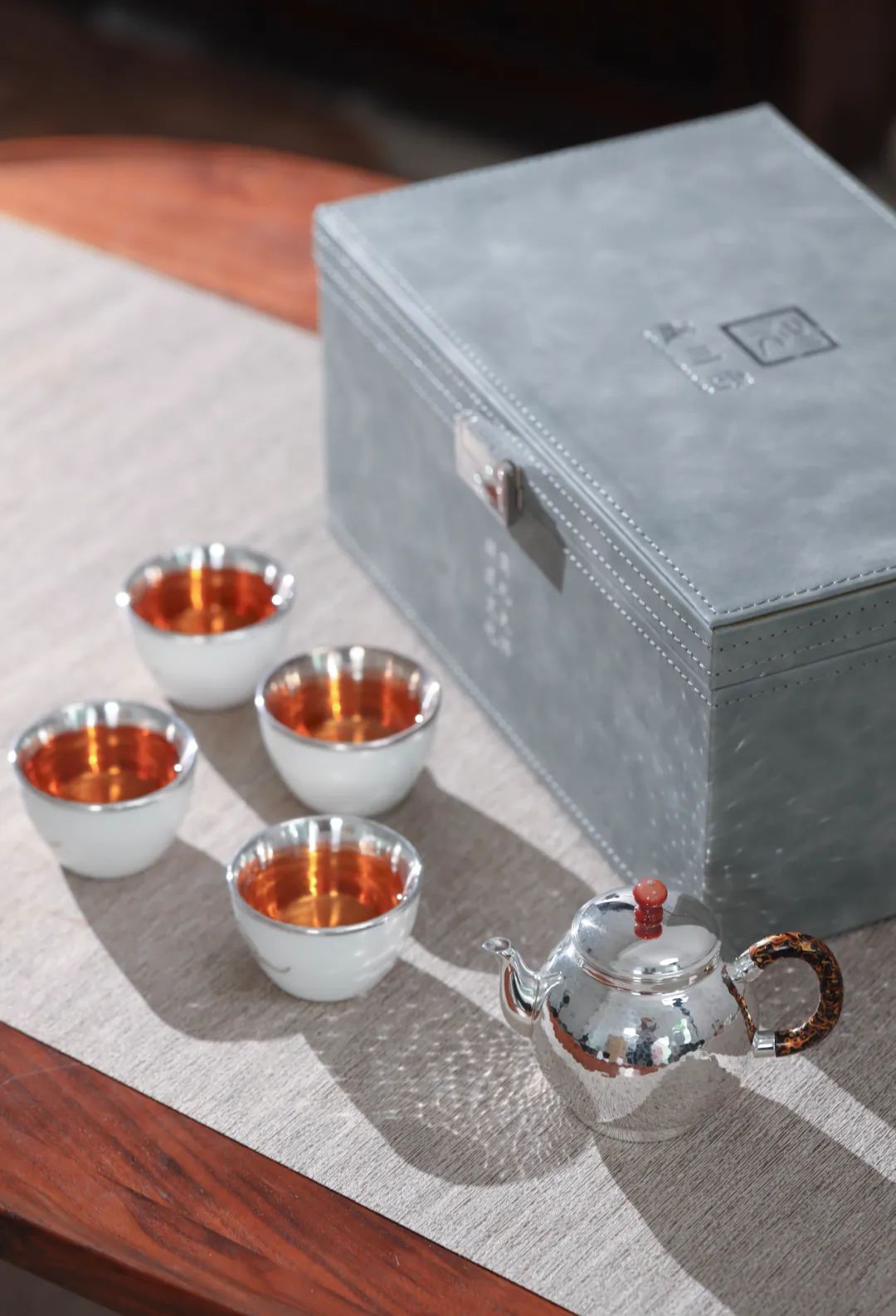 壶身的每一道锤纹,都是银匠人手工上万次捶打过程的记录。一锤一打呈现出千变万化的风格,如阡陌纵横的田野,如风吹荷塘的涟漪,随意自然。