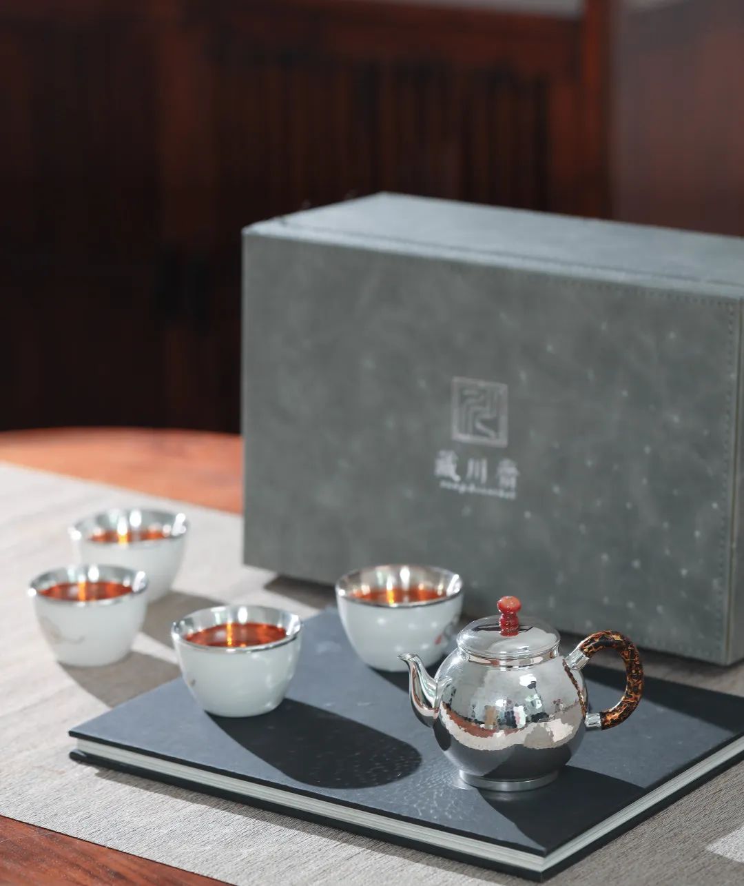 采用锤揲工艺手工锻造而成,形成如波光湖面的锤纹肌理深浅协调,质感细腻,于凹凸变化中,看似无序,又富有层次变化,诠释着锤纹工艺艺术的美感。
