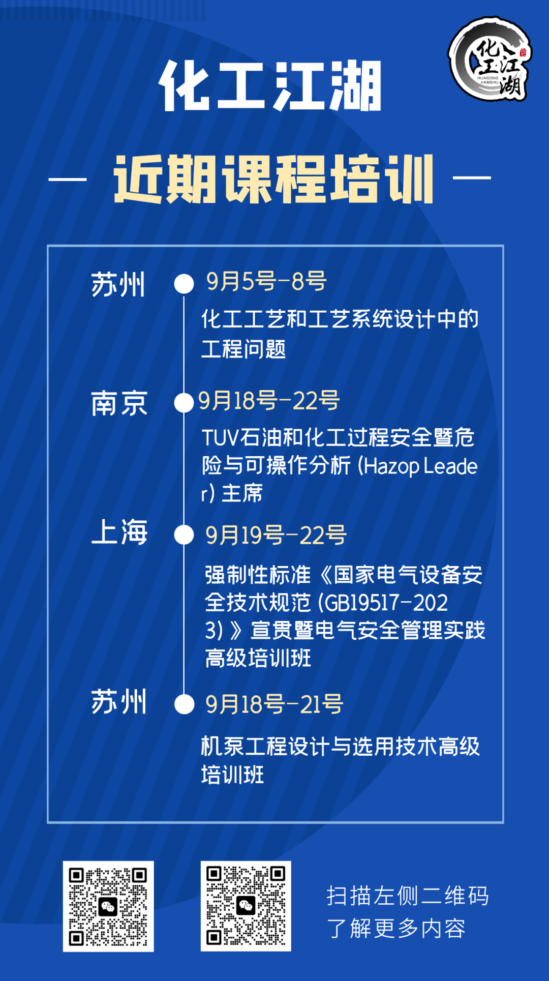 火速领取!《危险化学品运输与储存》电子书 PPT │ 安全仪表系统(SIS)相关知识解读和SIS系统与DCS系统比较【建议收藏】 危险与可操作性(HAZOP)分析及审查方法要点专题培训课件PPT 化工人必备!化工工艺设计计算EXCEL表 管道类规范汇总(收 藏 篇) 好书分享!《化工生产安全技术(第二版)》(附下载)