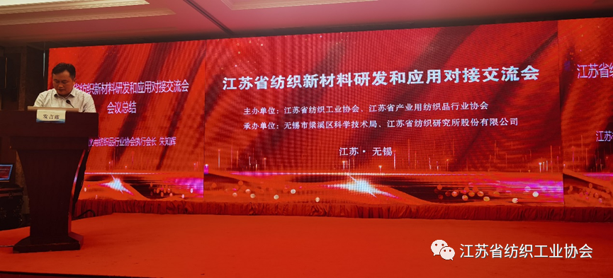 为推动江苏纺织新材料在服装、家纺等领域的应用,引导纺织产业链下游更好地使用纺织新材料,促进纺织新材料开发端与应用端的紧密联系,8月25日,江苏省纺织新材料研发和应用对接交流会在无锡召开。大会由江苏省纺织工业协会和江苏省产业用纺织品行业协会共同主办,无锡市梁溪区科学技术局和江苏省无锡纺织研究所股份有限公司联合承办。
