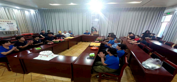 生日晚会由行政部主办,经理胡跃东主持,参加的人员有公司总经理刘伟、7月份生日员工、部分部门主管及员工。