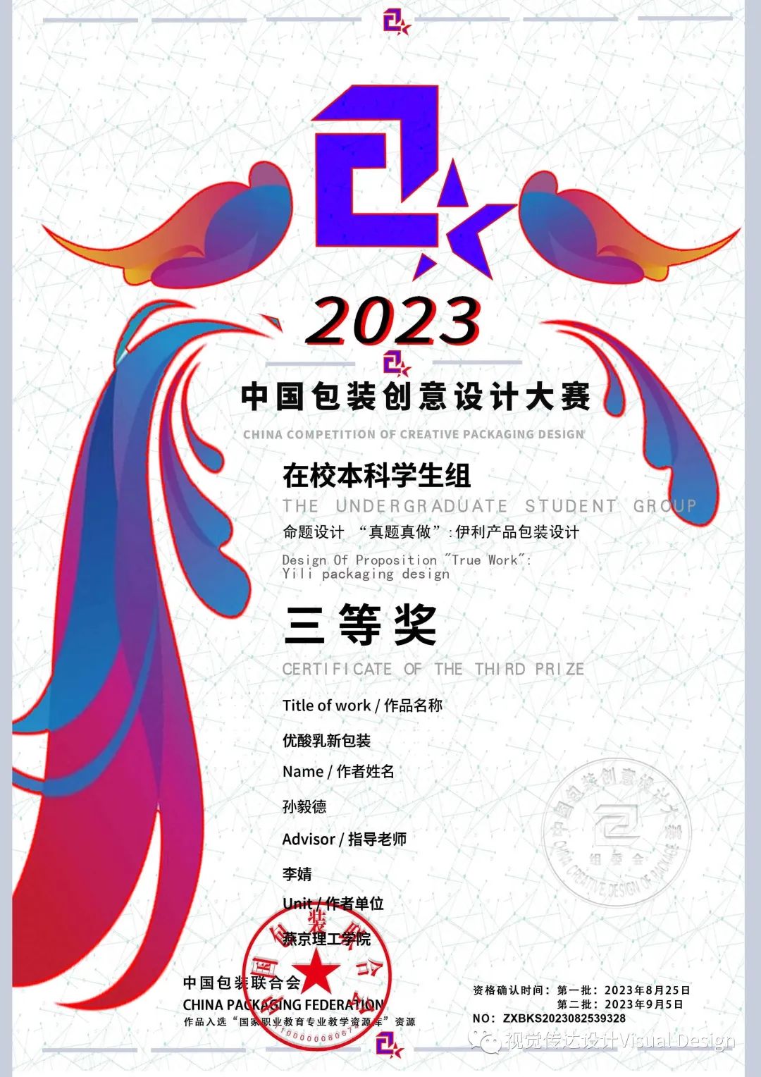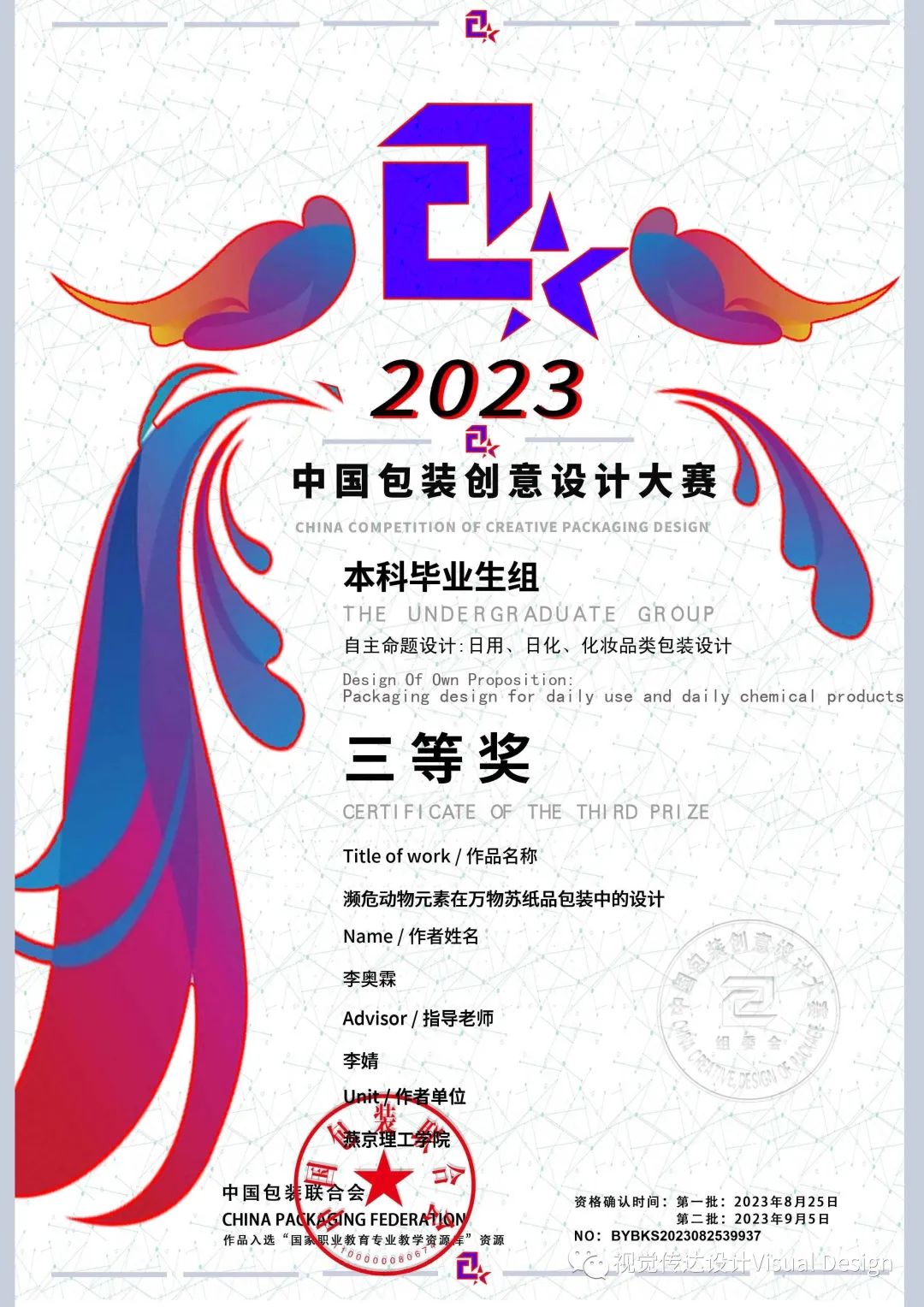 2023年8月25日,本届获奖名单正式出炉!我专业共有8件作品在此次赛事中获奖,包括三等奖4件,优秀奖4件。此赛事为包装设计的高级别赛事,难度较高,恭喜获奖的同学们。
