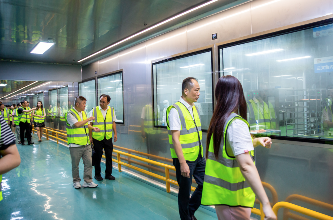 泉州市苏耿聪副市长一行详细听取了海天下水产品和美至生鲜蔬果产品介绍,深入了解快行天下生鲜物流中心全国智慧冷链运输配送仓储能力及数智化B2C冷链运营体系。紧接着,来访领导们调研了海天下食品股份与中国水产科学院东海研究所合作成立的水产营养健康与高值加工工程技术中心,参观海天下10万级水产洁净车间,日产15吨的挪威水鲜三文鱼自动分切加工生产线,品鉴了海天下贴体锁鲜装刺身三文鱼。工厂生产负责人详细介绍了三文鱼原料从挪威空运至浦东机场入港,全程冷链运输到海天下上海普陀区刺身生食车间,用饮用标准的纯净冷水清洗,经过十二道自动化分切拔刺修边检测工序,出厂不超过72小时,用心保证每一片三文鱼都新鲜甜美,全程可溯源,为消费者带来1路领鲜的极至美味!
