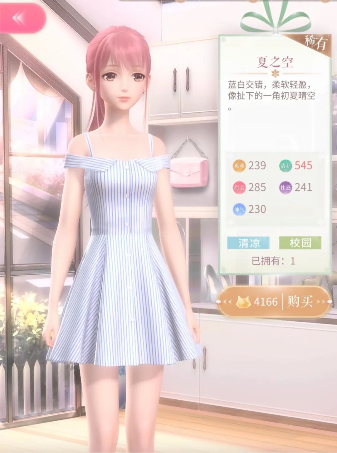 “蓝白交错,柔软轻盈,像扯下的一角初夏晴空。”