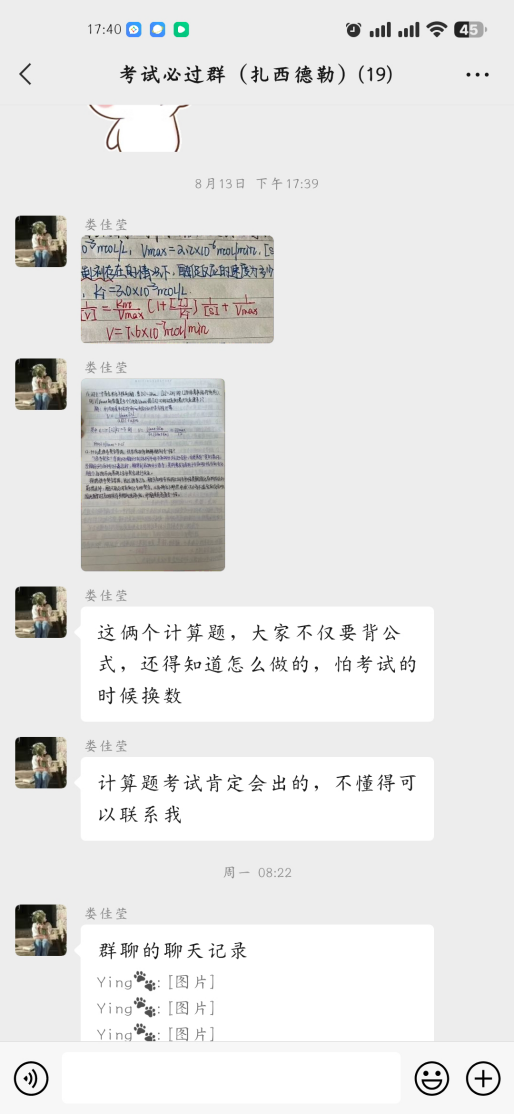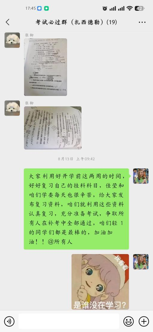 有些班级建立了考试复习互助群,帮助同学们能够有条不紊的进行考前复习。为同学分享了考试重点题型,强调了重要的公式,传授了一些自己的答题技巧,还解决了同学们的疑问。相信同学们在熟练的掌握这些小技巧之后,对于开学补考的复习,一定会更加的有思路。