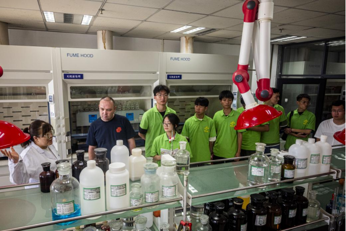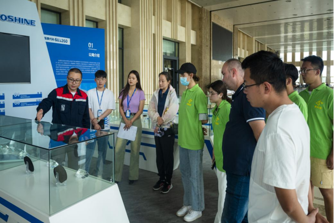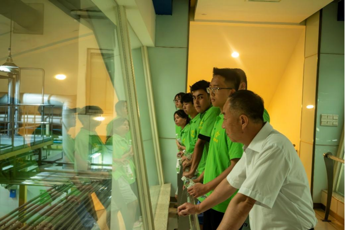 工作人员为团队成员讲解工艺生产流程