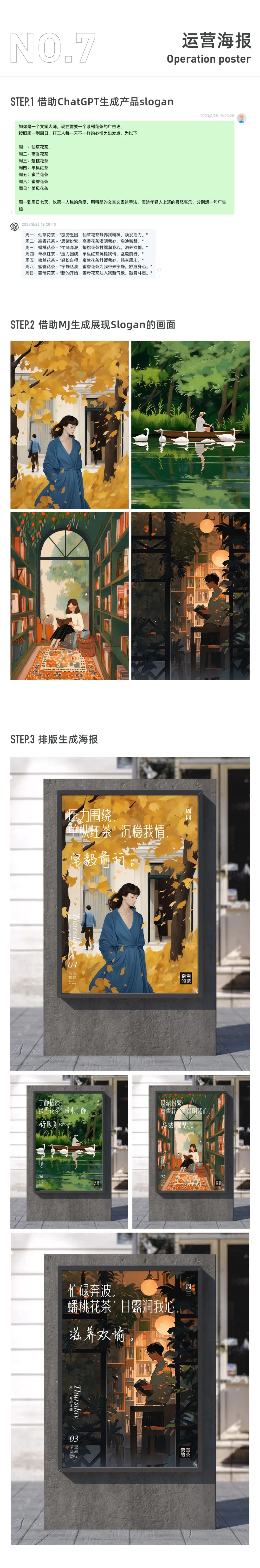 再次借助人工智能ChatGPT的力量,为产品生成一系列的产品slogan;接着再用Midjourney快速生成符合slogan的画面,结合排版,日常的运营海报就完成啦,轻松又愉快~