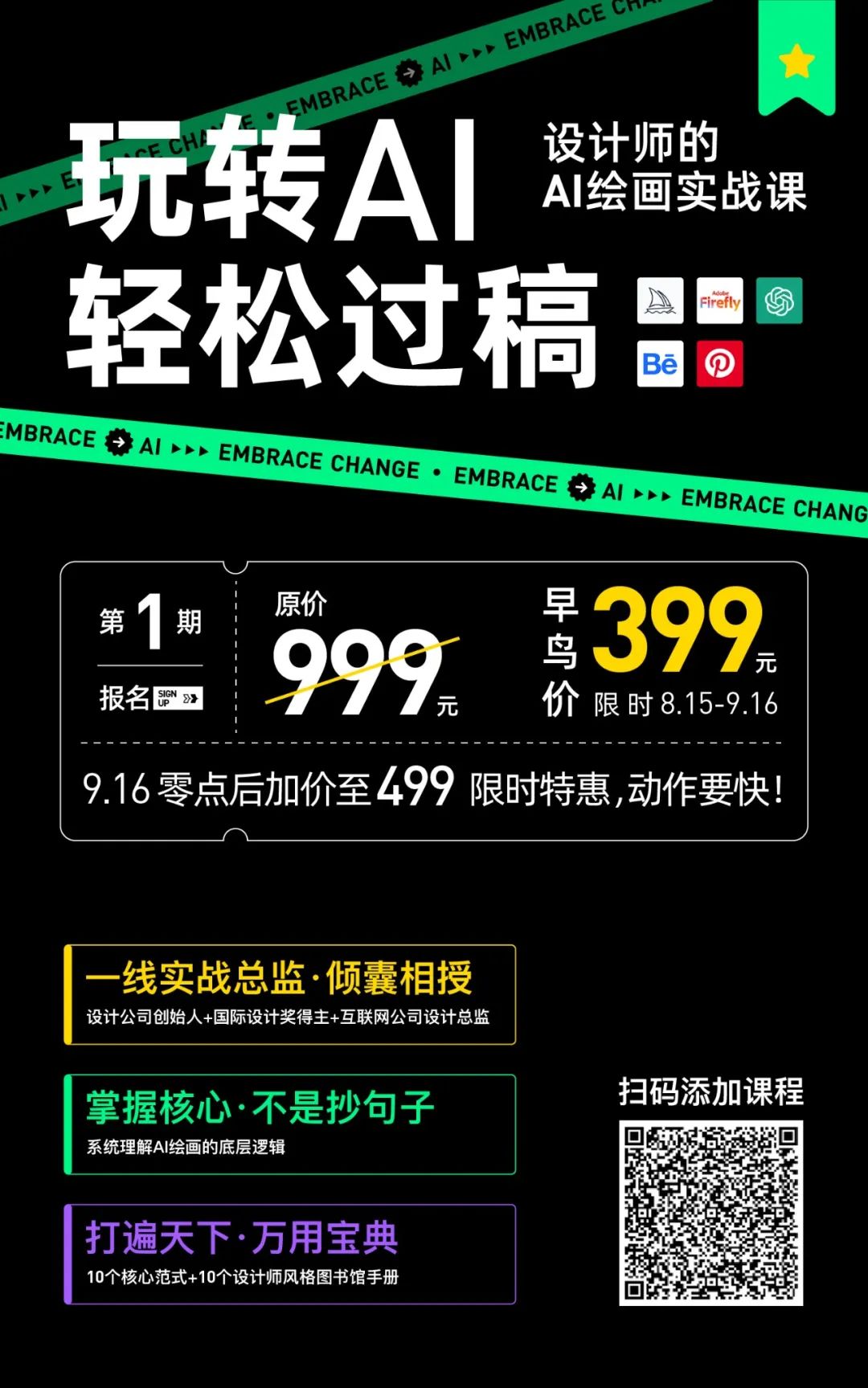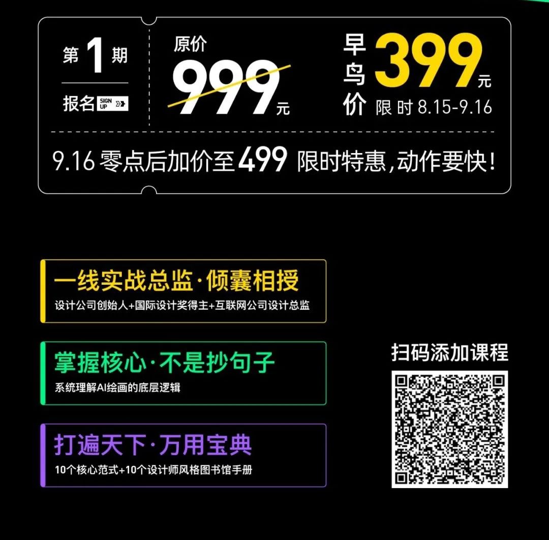 还没有用过midjourney的同学有福了,历经四个月的研发,新森推出了设计师专属的AI绘画课,现在是早鸟价!请抓紧上车