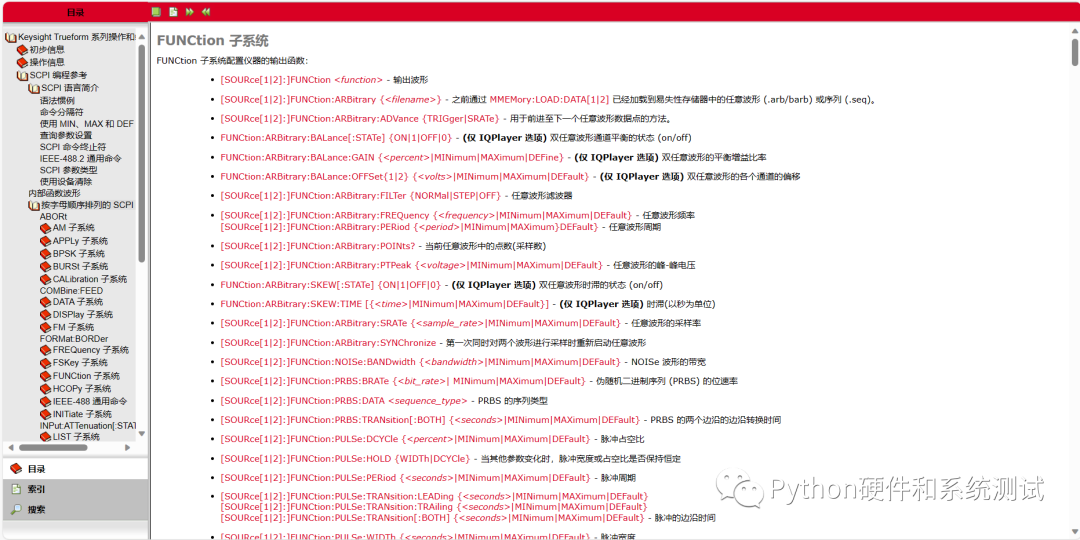 打开后,可以看到SCPI命令,可以快速查找