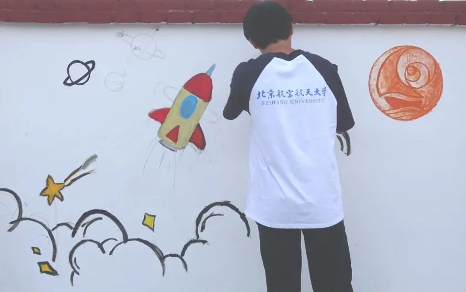 了解了当地的基本情况后,我们在空白的墙上留下了多彩的绘画,希望作为青年学子的我们,能够为阳坡村的发展贡献出一份力量!